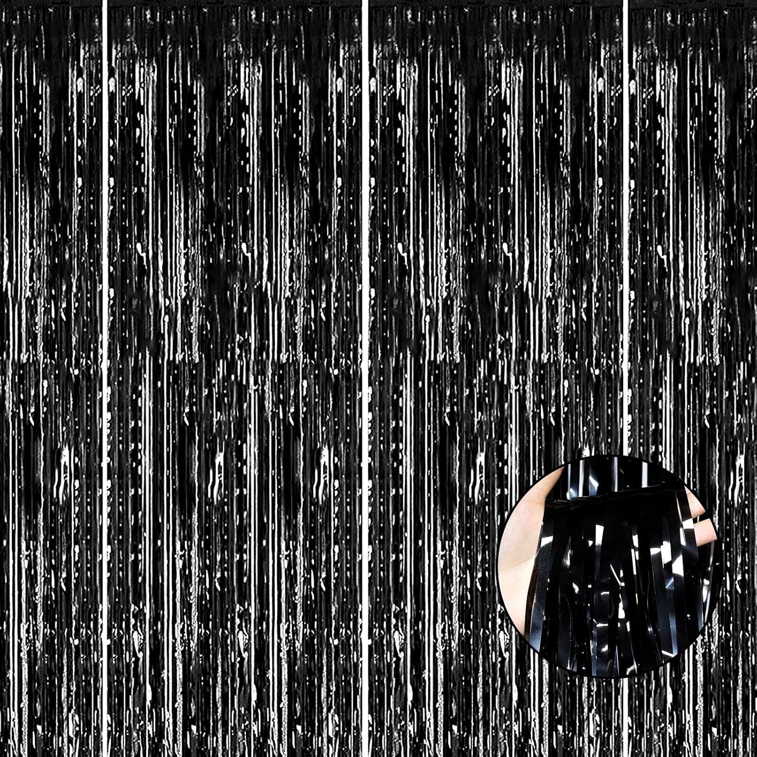 4 Pack Black Foil Fringe Curtain Backdrop, 3.28Ft x 8.2Ft Metallic Tinsel Streamer Curtains for Party, Photo Booth Props, Birthday, 2022 Graduation Decoration Party Supplies