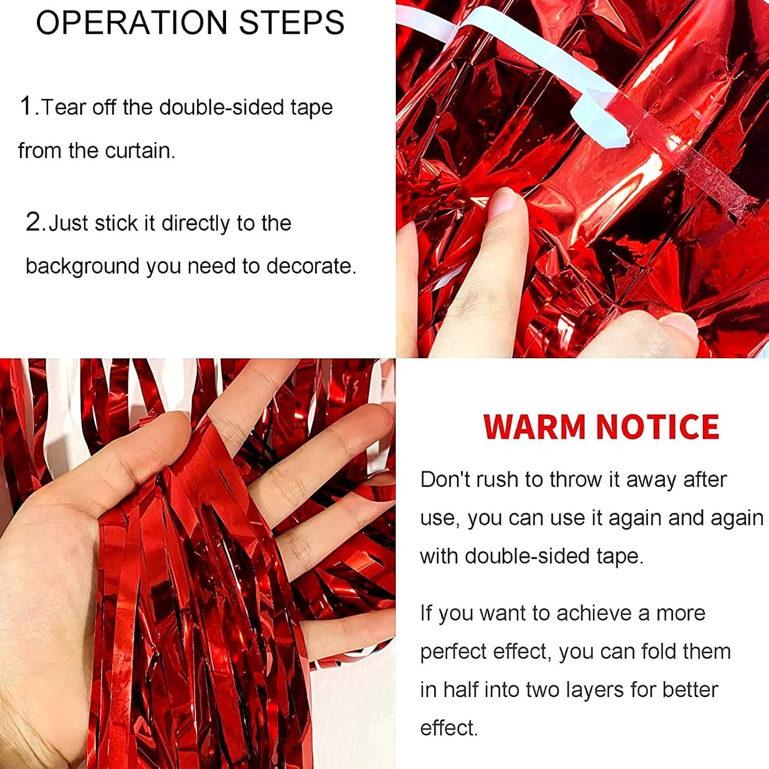 4 Pack Red Foil Fringe Curtain Backdrop, 3.28Ft x 8.2Ft Metallic Tinsel Foil Fringe Streamer for Party, Photo Booth Props, Birthday, 2022 Mother's Day Decoration Party Supplies