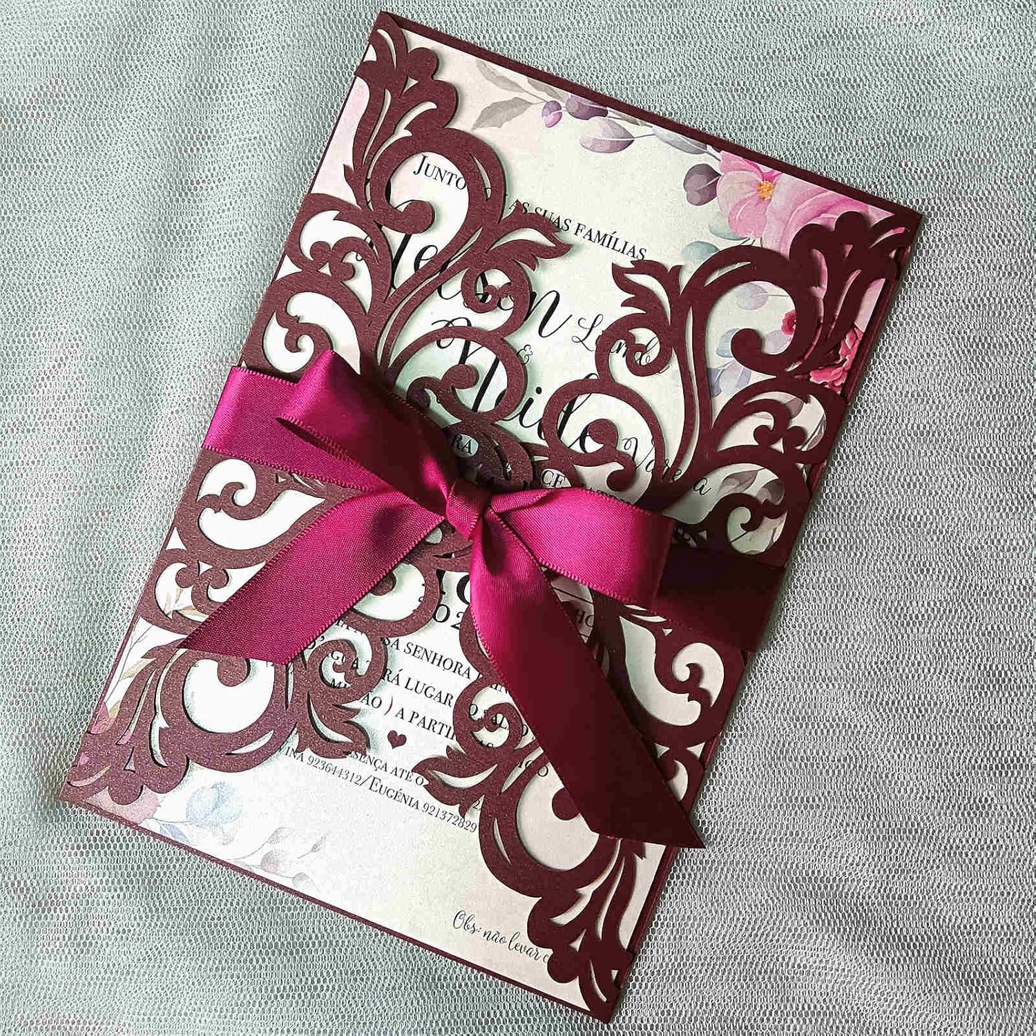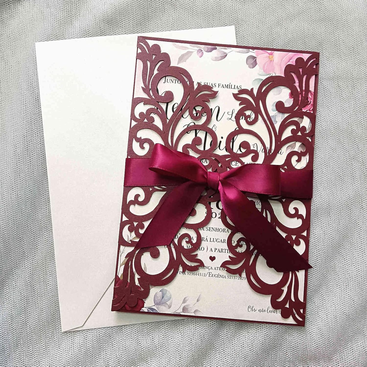 - Package including: 25 * Laser Cut Invitations Pockets + 25 * Cream Envelopes+25 * Blank Inner Sheets +25 * Ribbons