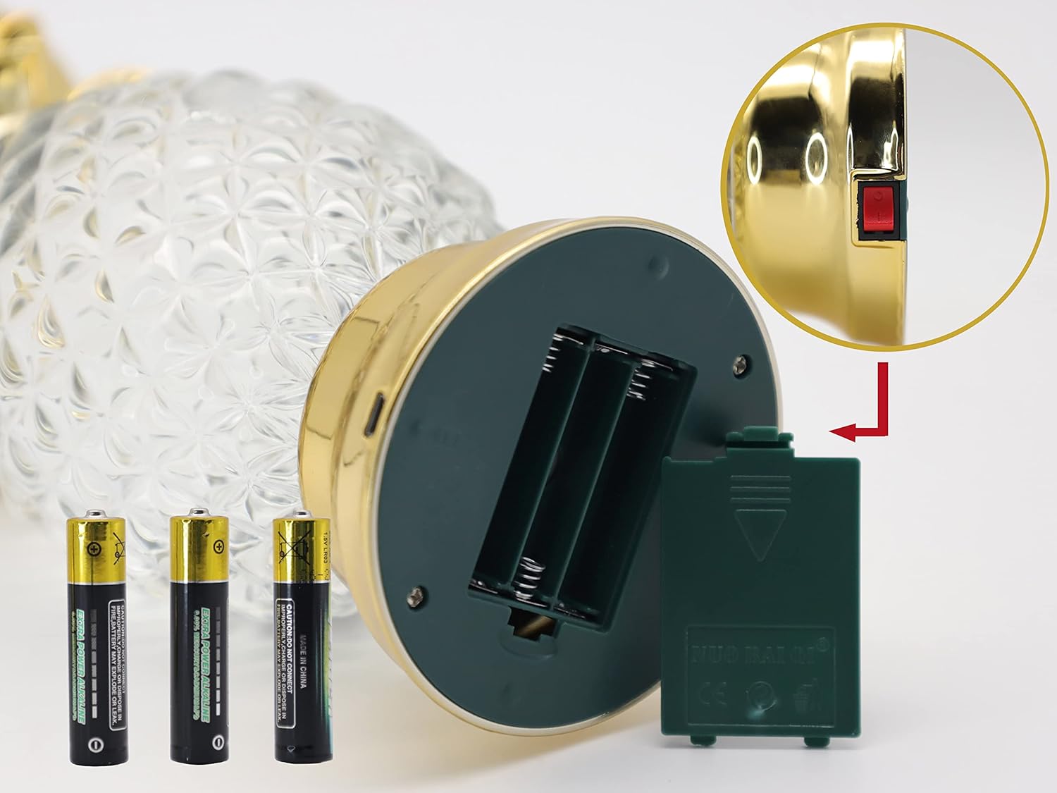 YAKii 9.5" Pineapple LED Color Changing Shine Lamp,Swirling Water Waves Lamp Kid Safe Battery/USB Cable Operated,Table Lamp Candle Holder Table Decoration Gold