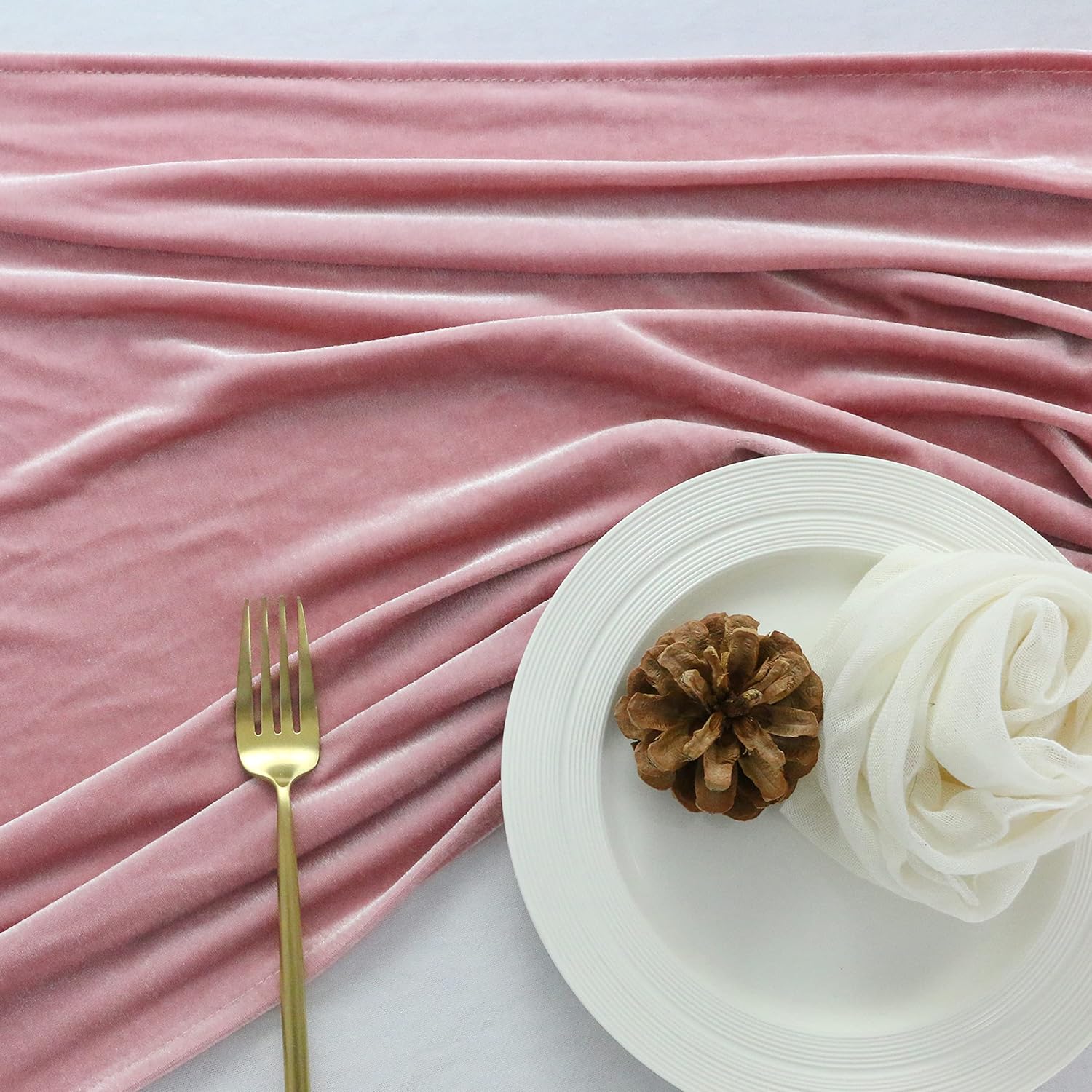 Velvet Table Runner, 10ft Luxurious Wedding Reception Decorations Soft Velvet Fabric Table Linen Overlay for Party (20 x 120 inch, Dusty Rose)