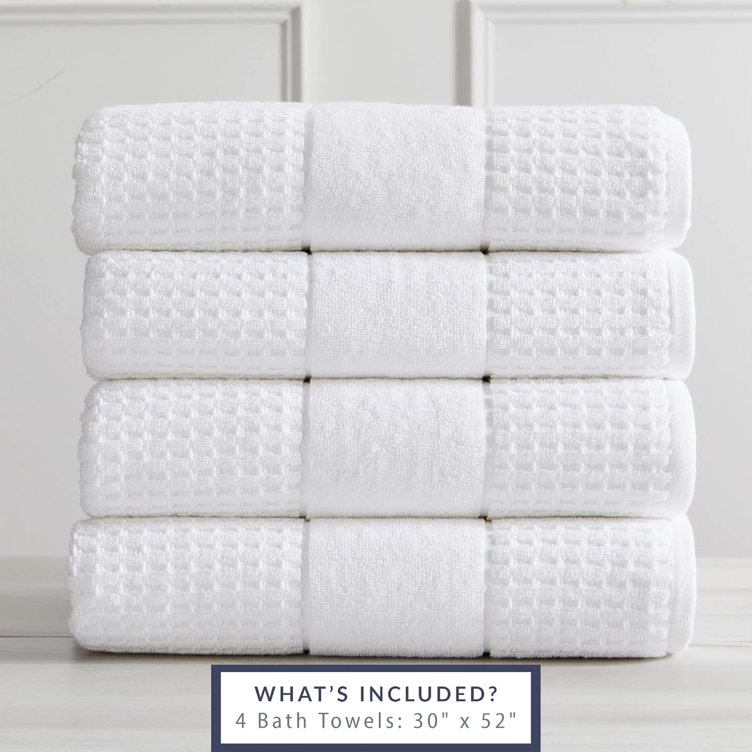 100% Cotton Super Soft Luxury Bath Towel Set | Quick-Dry and Highly Absorbent | Waffle Textured | 550 GSM | Includes 4 Bath Towels | Harper Collection (White)