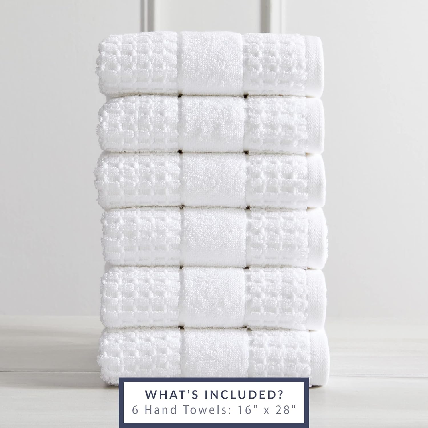 100% Cotton Super Soft Luxury Hand Towel Set | Quick-Dry and Highly Absorbent | Waffle Textured | 550 GSM | Includes 6 Hand Towels | Harper Collection (White)