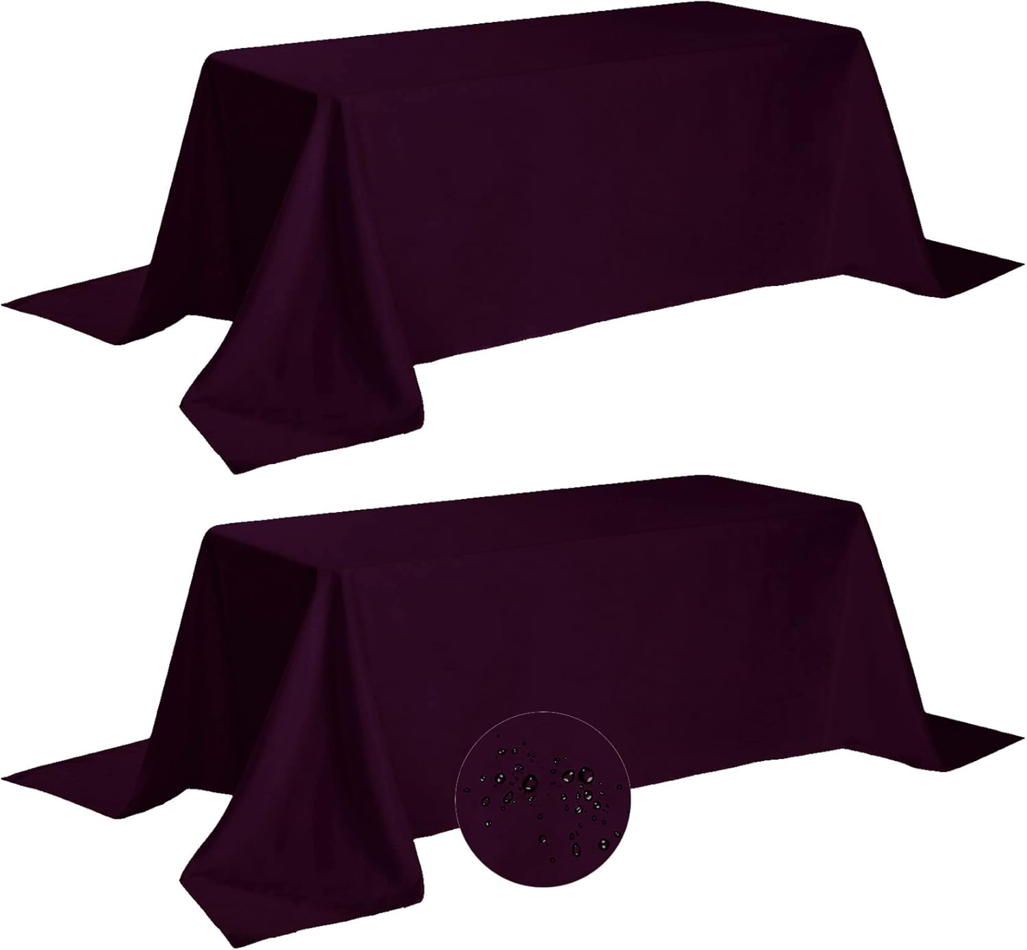 Fokitut 2 Pack Waterproof Rectangle Tablecloth, 90x156 Inch,Stain Resistant and Wrinkle Polyester Table Cloth, Fabric Table Cover for Kitchen Dining, Wedding, Party, Holiday Dinner-Eggplant