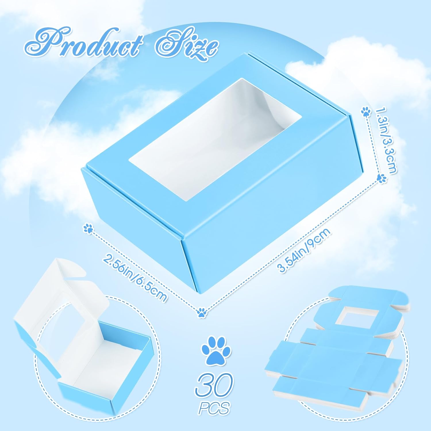 Zonon 30 Pcs Soap Boxes for Homemade Packaging, Mini Kraft Treat Boxes with Window for Bakery Candy Soap Making Gift Packaging(3.5 x 2.4 x 1.2 Inch,Blue)