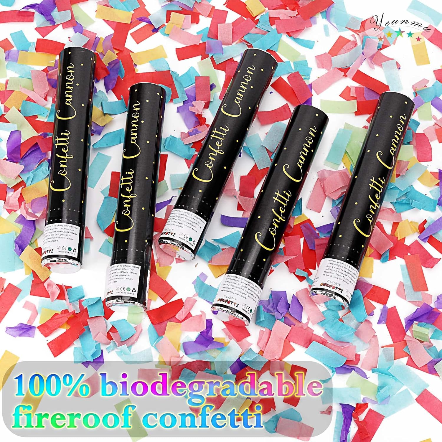 - Biodegradable Confetti Poppers: The Yeunmu party poppers fillings are colorful degradable paper scraps, requiring no clean-up after use. The confetti will biodegrade without any negative impact on the environment.