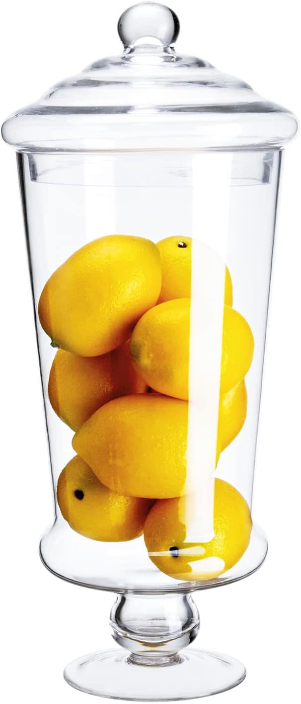- ☛High Quality☚ These footed classic style apothecary jars are made from high-quality clear glass which allows the contents of the jar to be easily seen without moving the lid. DIMENSIONS: The large jar measures approximately 16 inches height x 6 inches diameter