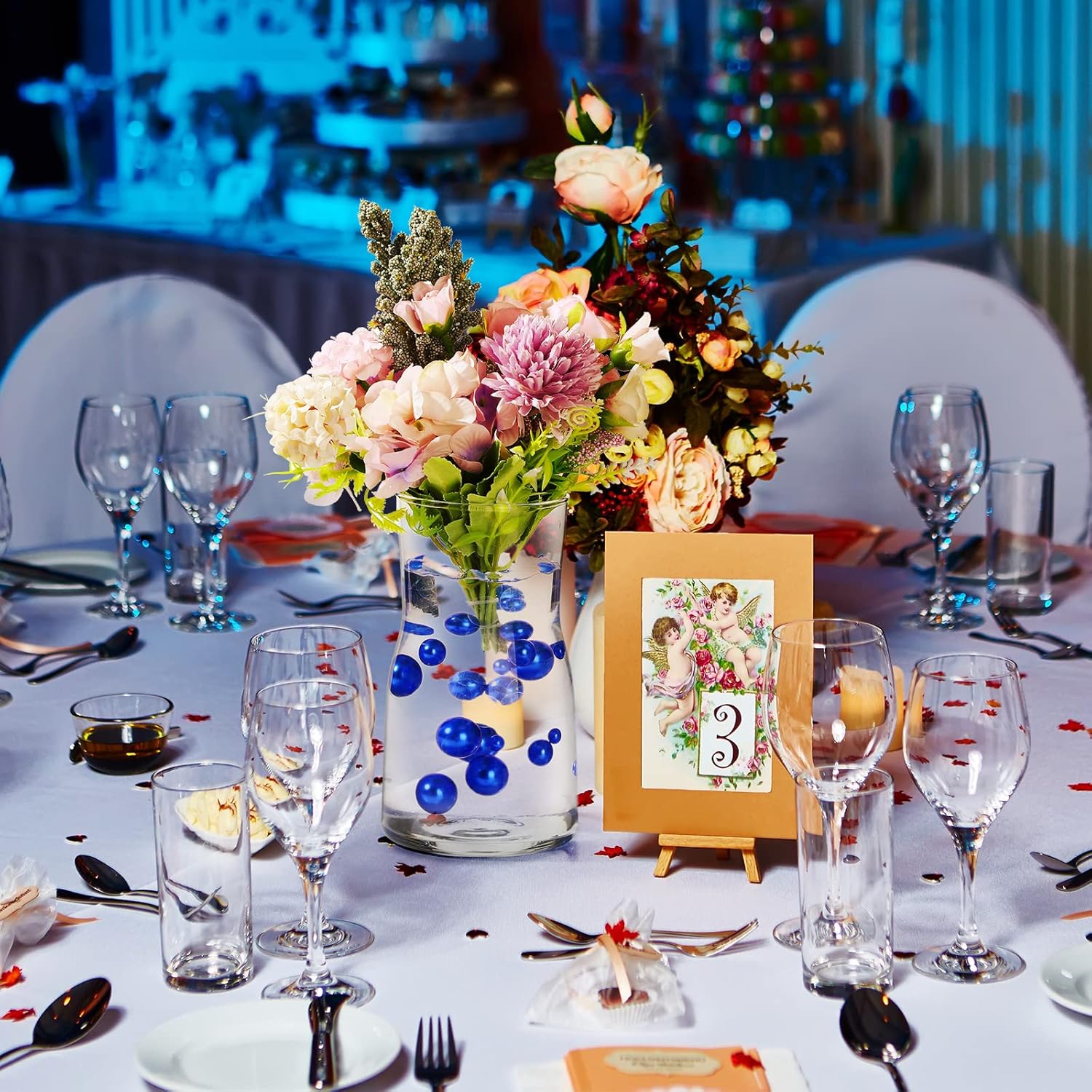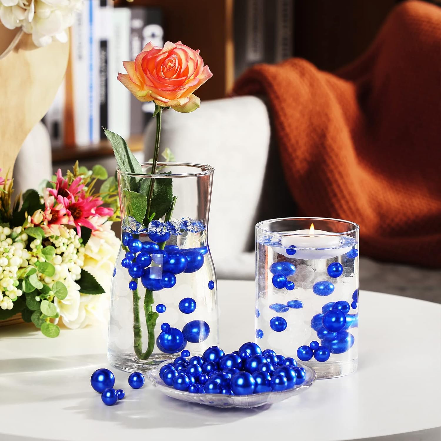 150 Pieces Vase Filler Faux Pearls Vase Makeup Beads No Hole Gloss Bead Mixed Sizes Round Pearl for Home Party Wedding Decor, 8/14/20 mm(Royal Blue)