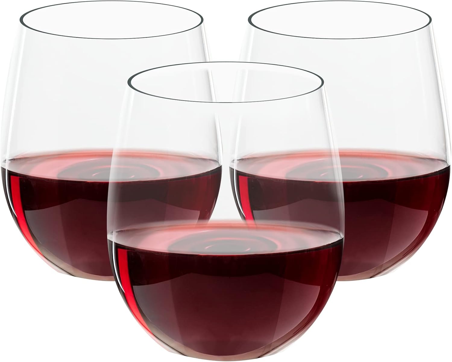 - Our clear stemless plastic wine glasses are heavy duty, unbreakable, shatterproof, disposable and reusable; High quality PET plastic makes the wine glass look crystal clear and adds a touch of ambiance to your party