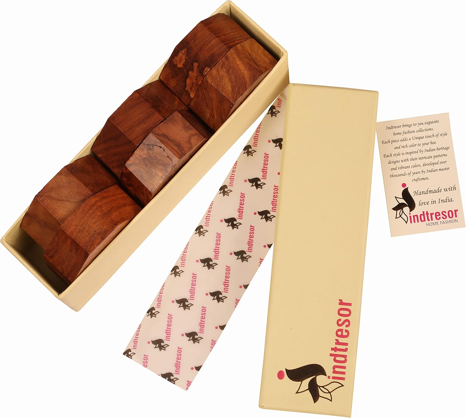 Finely Handcrafted Natural Wood Geometric Pentagon Shape Large Size Party Dining Table Napkin Holders in Natural Tone. (Set of 6).
