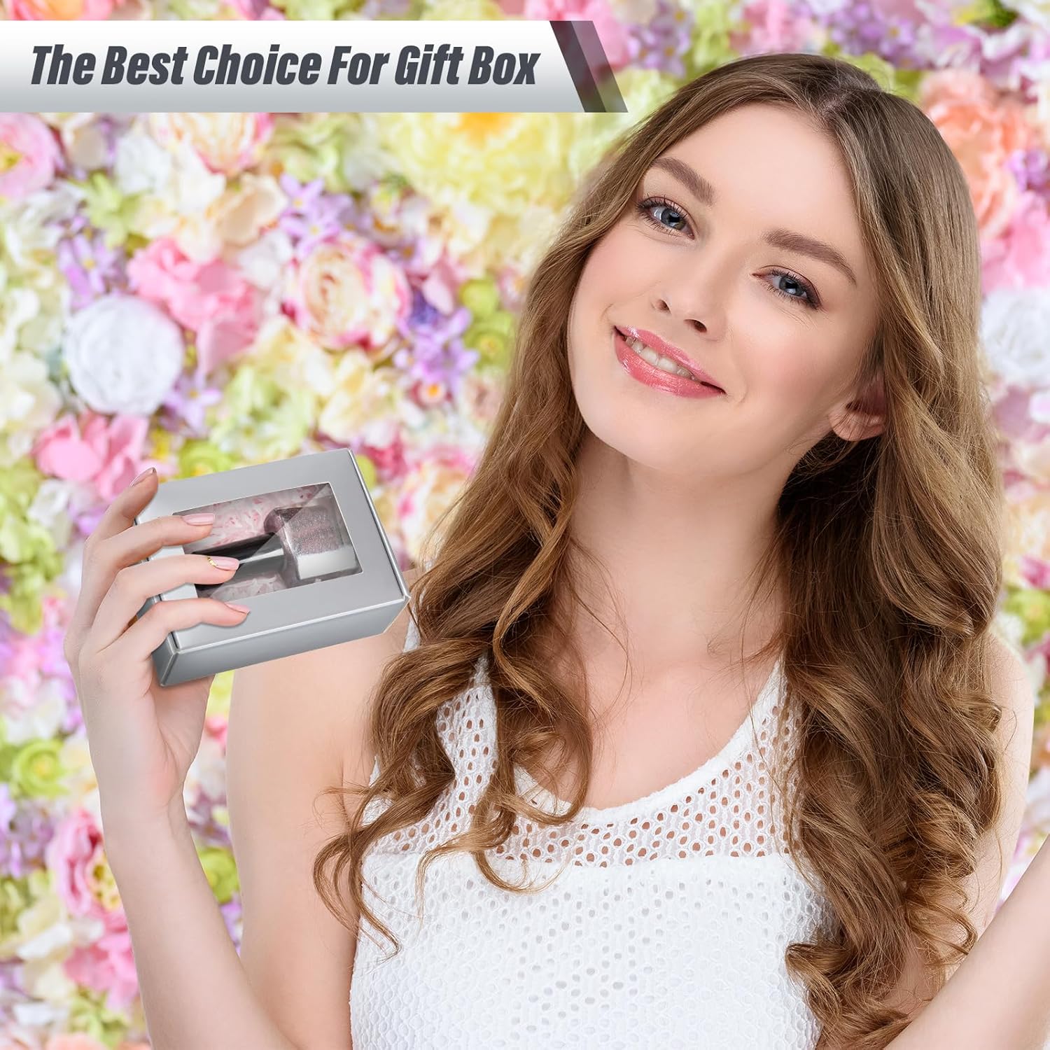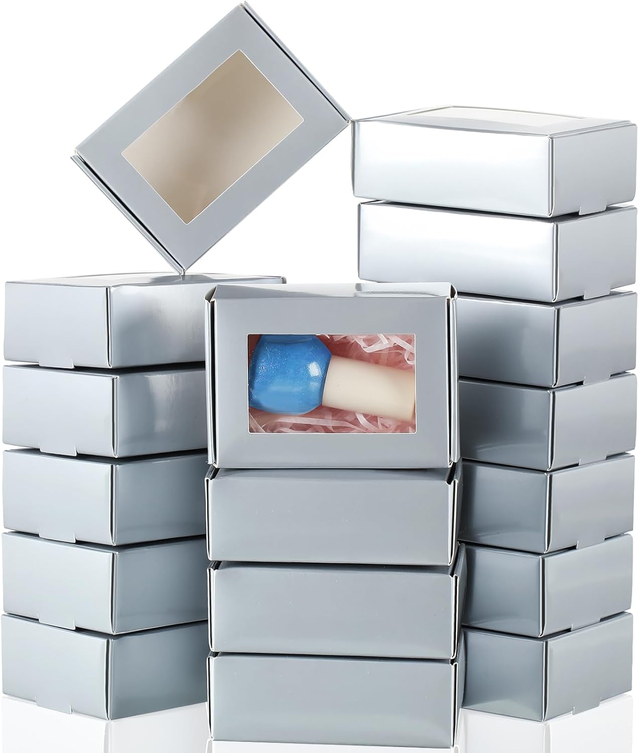 Zonon 30 Pcs Soap Boxes for Homemade Packaging, Mini Kraft Treat Boxes with Window for Bakery Candy Soap Making Gift Packaging(3.5 x 2.4 x 1.2 Inch,Silver)