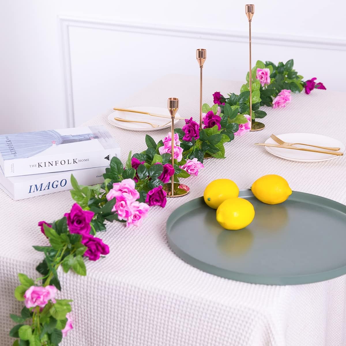 Kisflower 3PCS/23.7FT Artificial Rose Flower Garland, Fake Vines Silk Floral Hanging Plant for Wedding Arch Decorations Room Party Home Garden Hotel Office Wall Decor (Fuchsia)