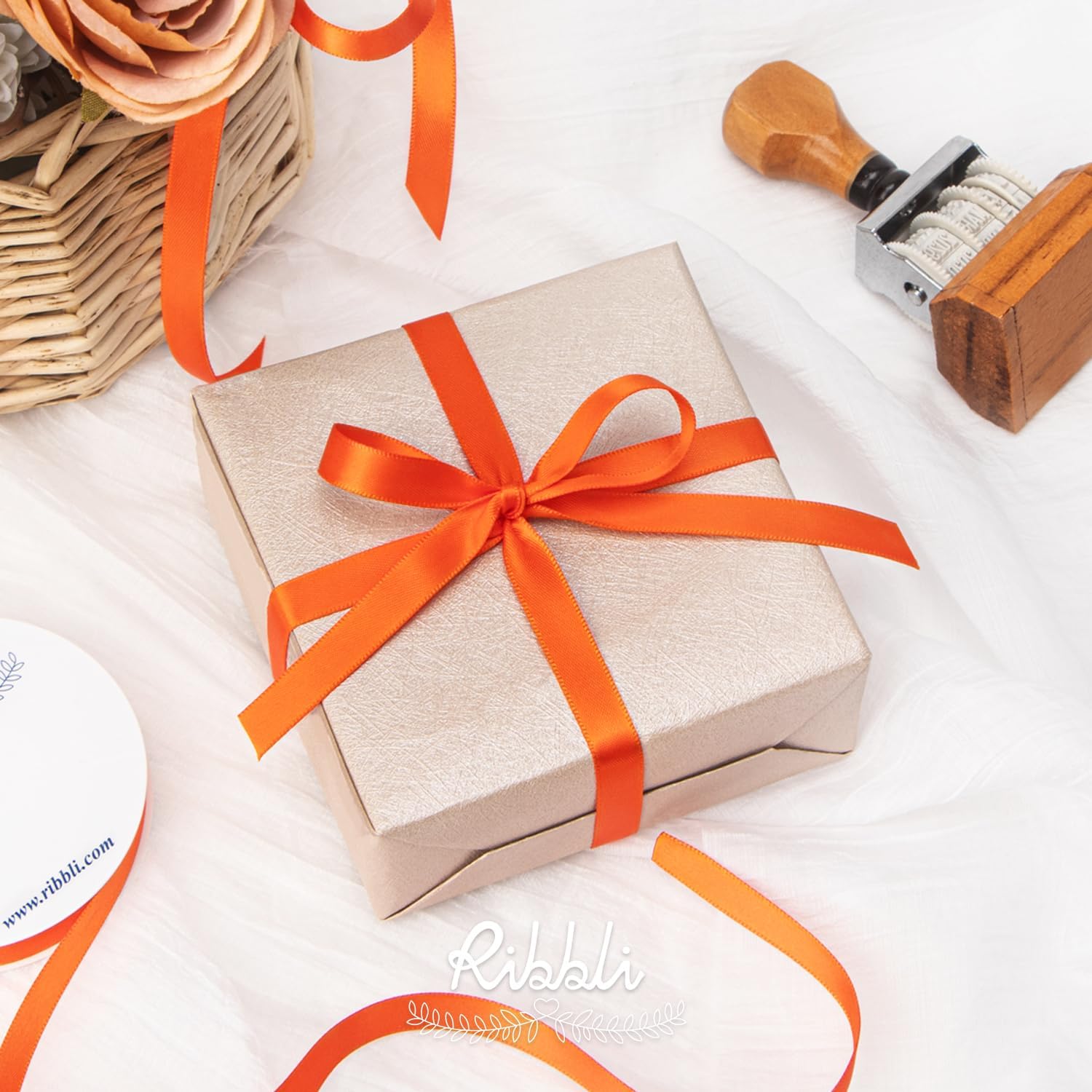 Ribbli Double Faced Torrid Orange Satin Ribbon,3/8” x Continuous 25 Yards,Use for Bows Bouquet,Gift Wrapping,Floral Arrangement