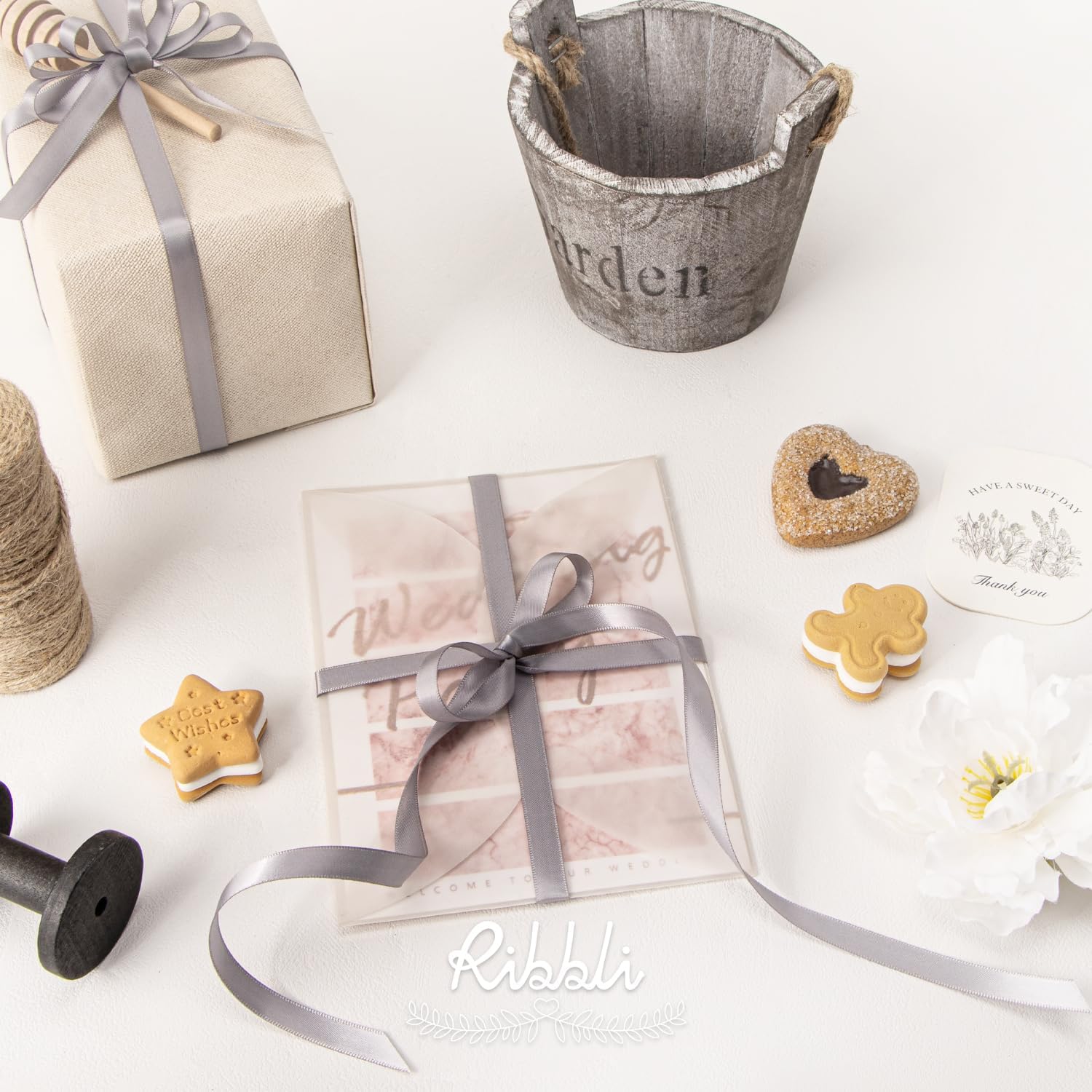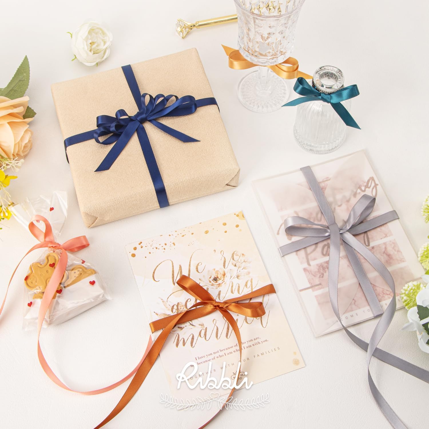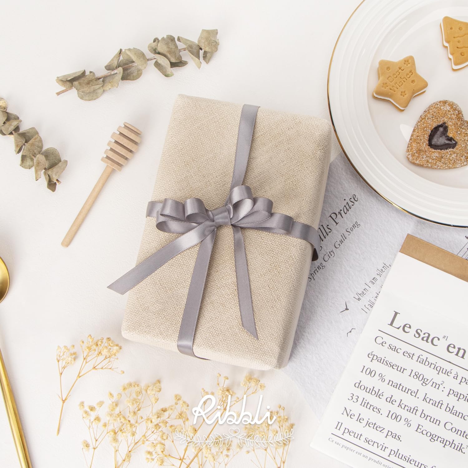 Ribbli Double Faced Silver Satin Ribbon,3/8” x Continuous 25 Yards,Use for Bows Bouquet,Gift Wrapping,Floral Arrangement