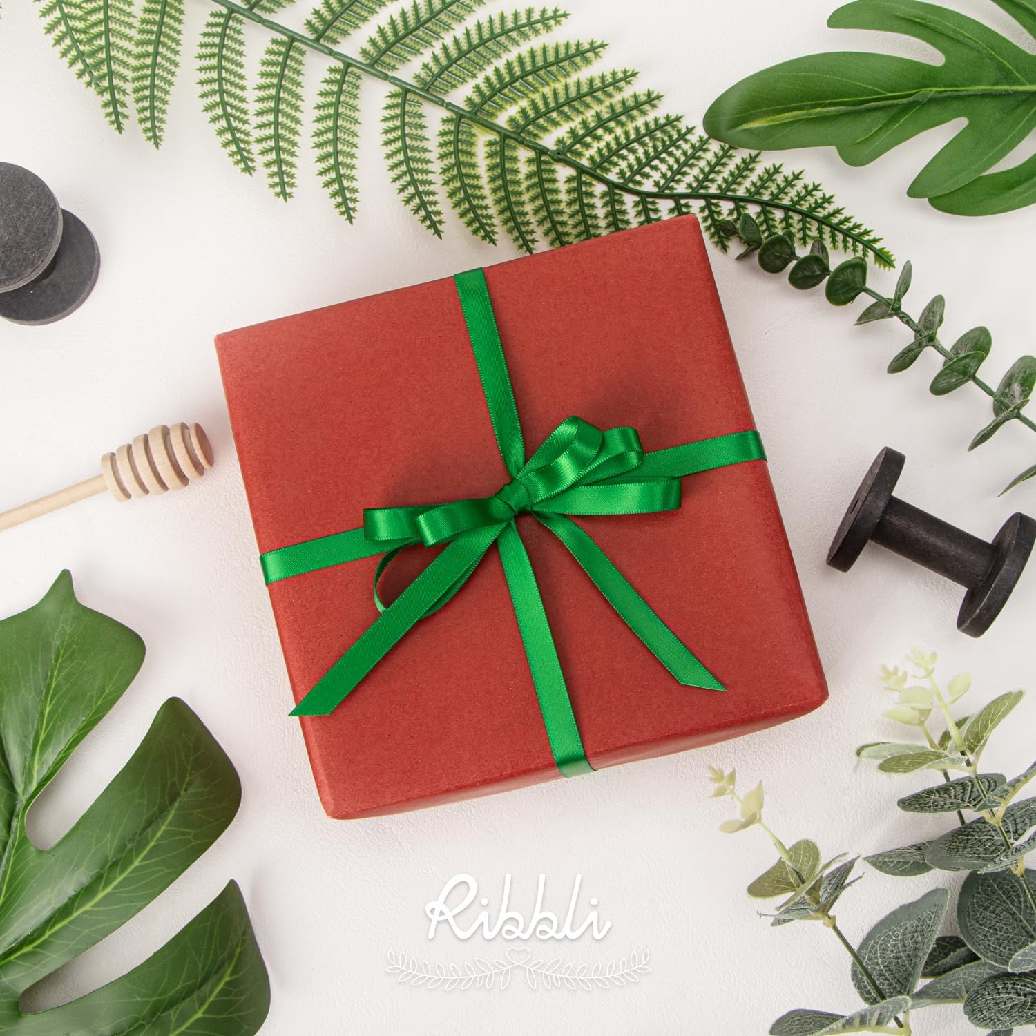 Ribbli Double Faced Emerald Green Satin Ribbon,3/8” x Continuous 25 Yards,Use for Bows Bouquet,Gift Wrapping,Floral Arrangement