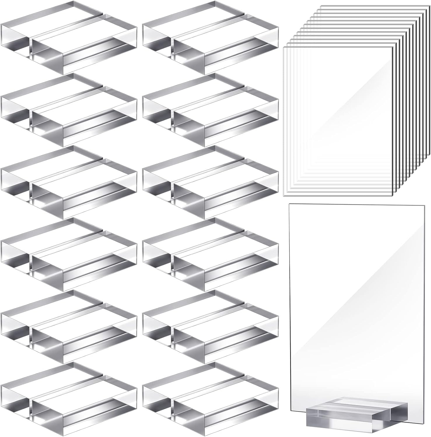 Yulejo 12 Pcs Clear Acrylic Place Cards with 12 Acrylic Holder Wedding Table Numbers with Acrylic Stand DIY Table Name Cards Plates for Wedding Reception Banquet Decors (4 x 6 x 0.08 Inch)