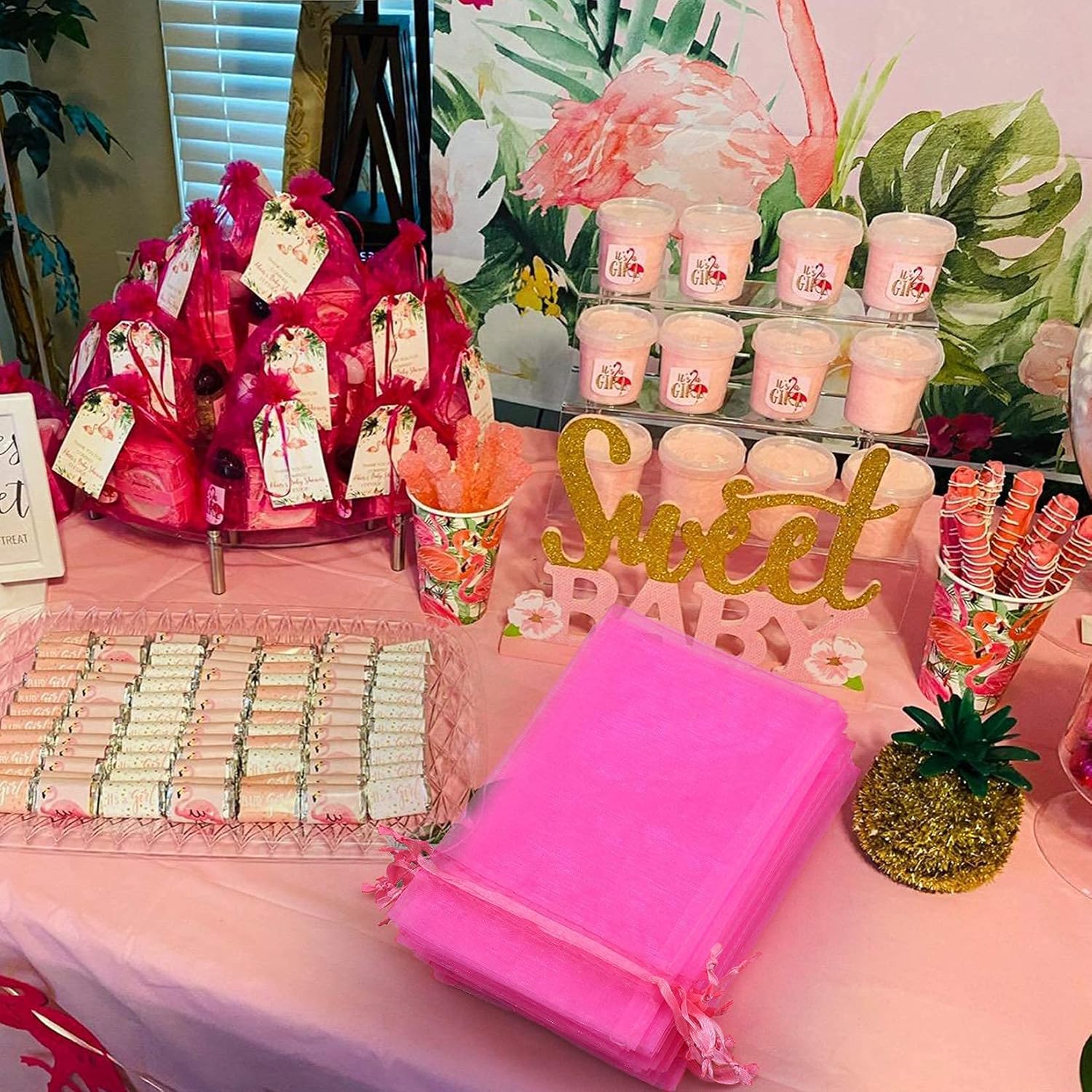 ANZNKU 100 Pack 4x6 inches Pink Drawstring Organza Mesh Bags, Wedding Favor Gift Bags For Party, Festival, Christmas, Sheer Organza Favor Candy Bag