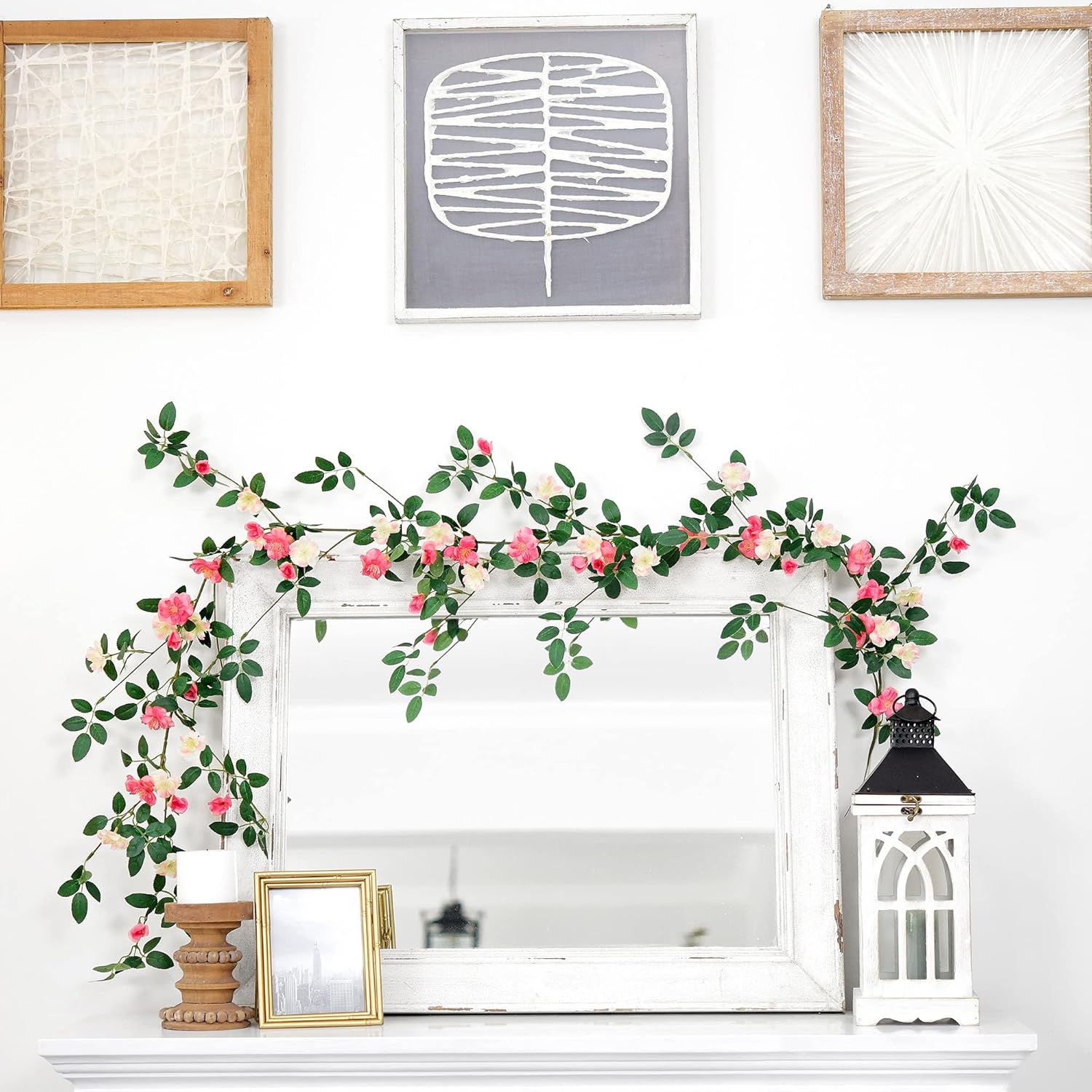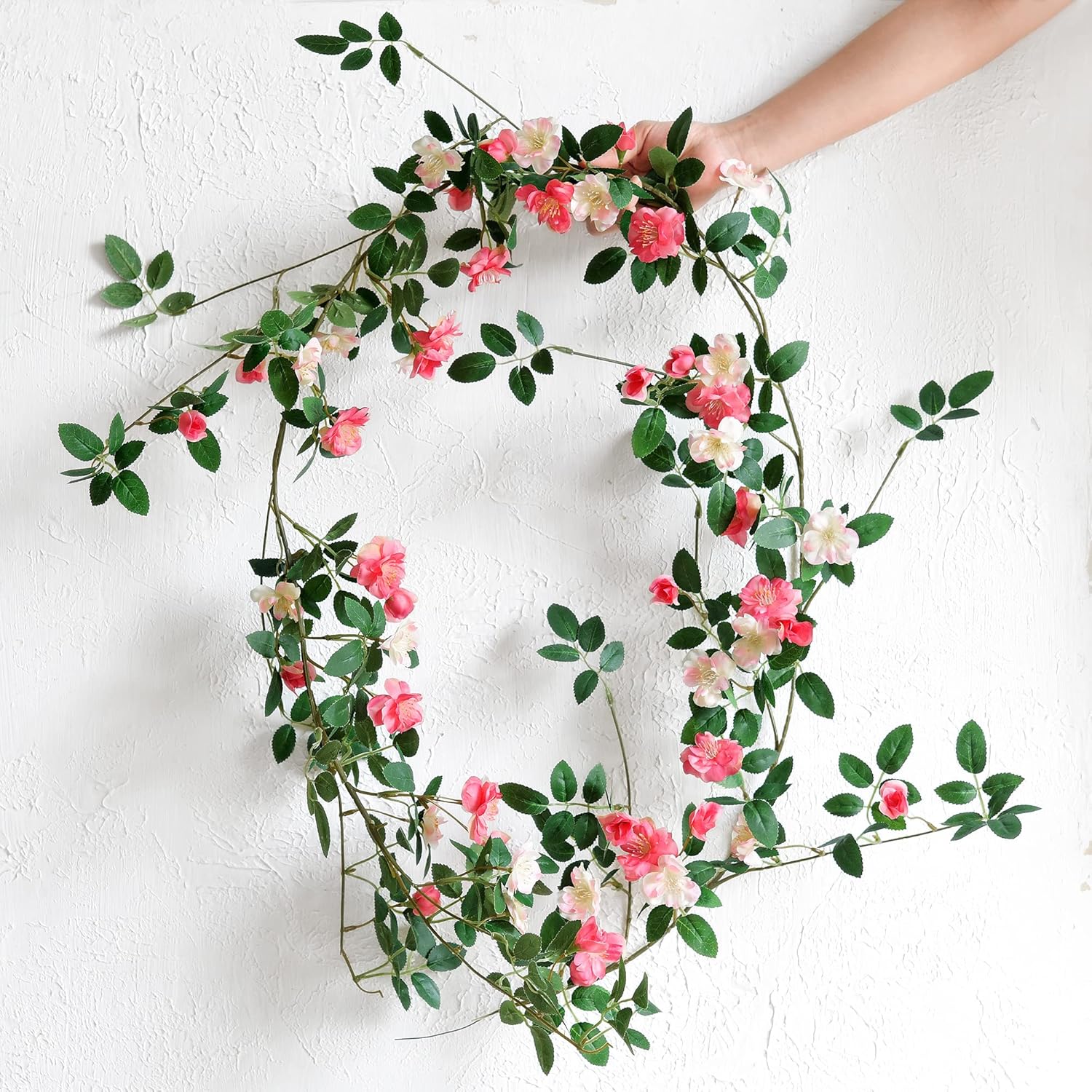 FiveSeasonStuff Bendable Posh Pink Flower Garlands, Artificial Silk Wild Roses Vine Leaves Hanging Flowers for Wall Decoration Basket Trellis Wedding Home 2 Pack 12 ft