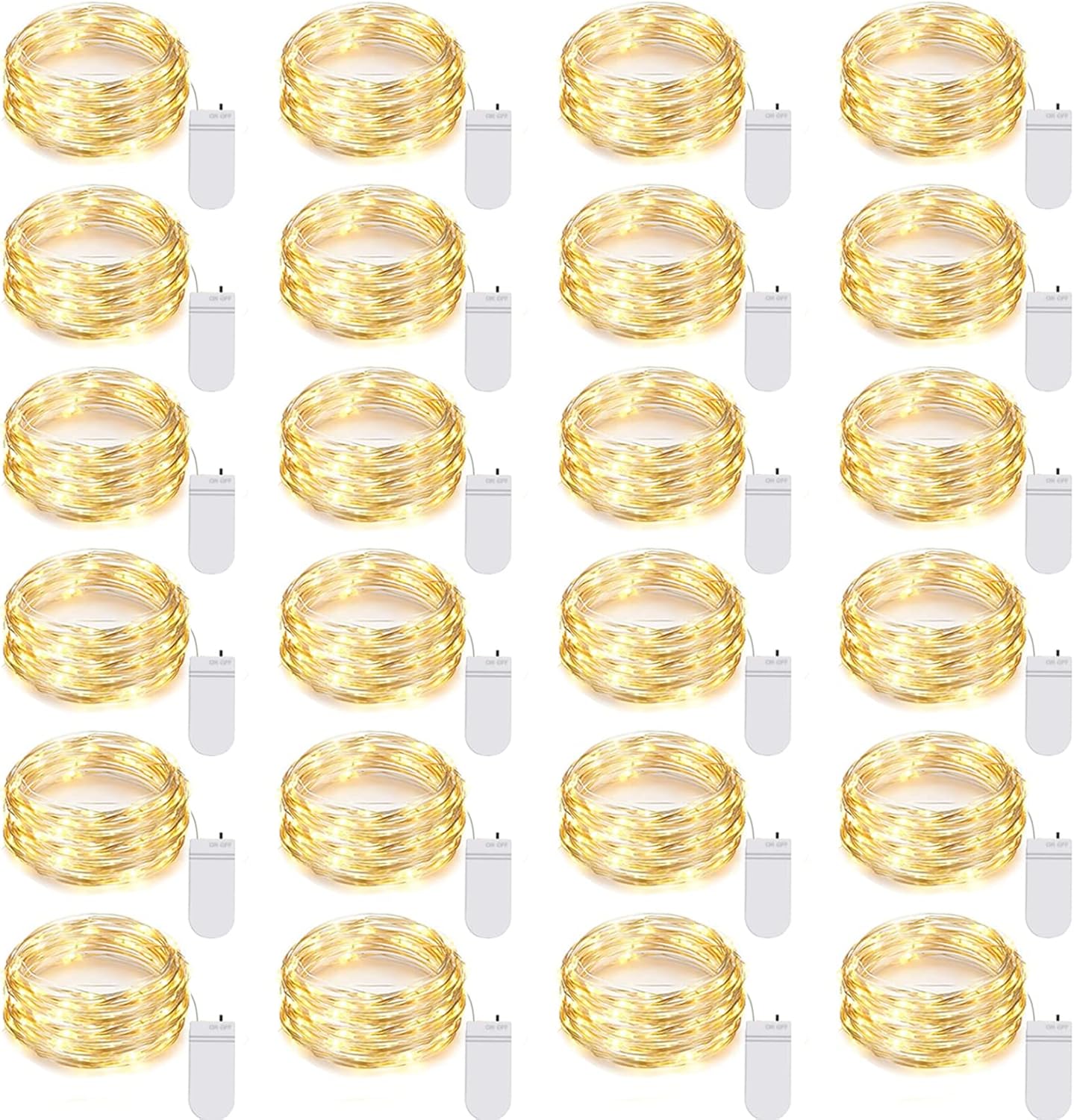 24 Pack LED Fairy Lights Battery Operated 7Ft 20Led Warm White Mini String Lights Waterproof Christmas Lights for Mason Jars Bedroom DIY Party Wedding Christmas Decor