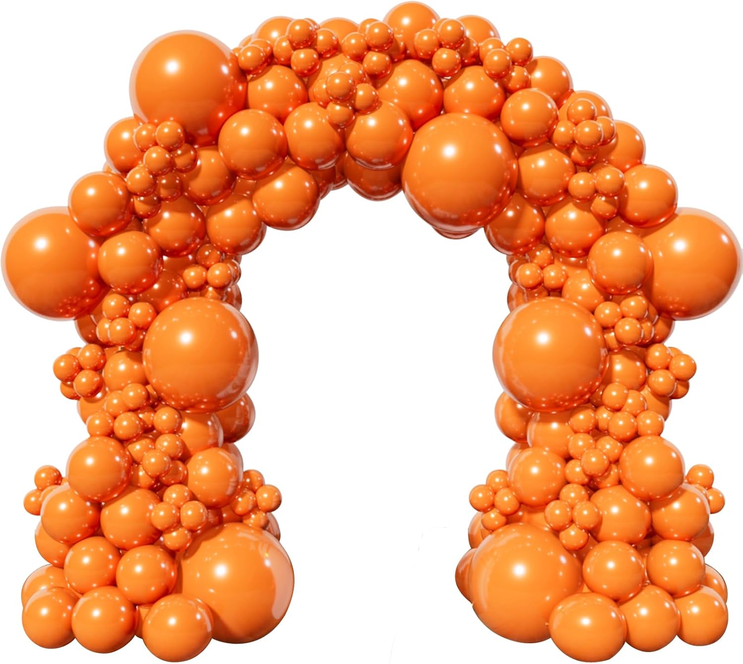 - Orange balloon garland kit: 111Pcs Orange balloons pack, including 8 pcs 18 inch balloons, 50 pcs 12 inch balloons, 50 pcs 5 inch balloons, a 5 meter balloon chain, 100 dots of glue dots, a roll of ribbon.