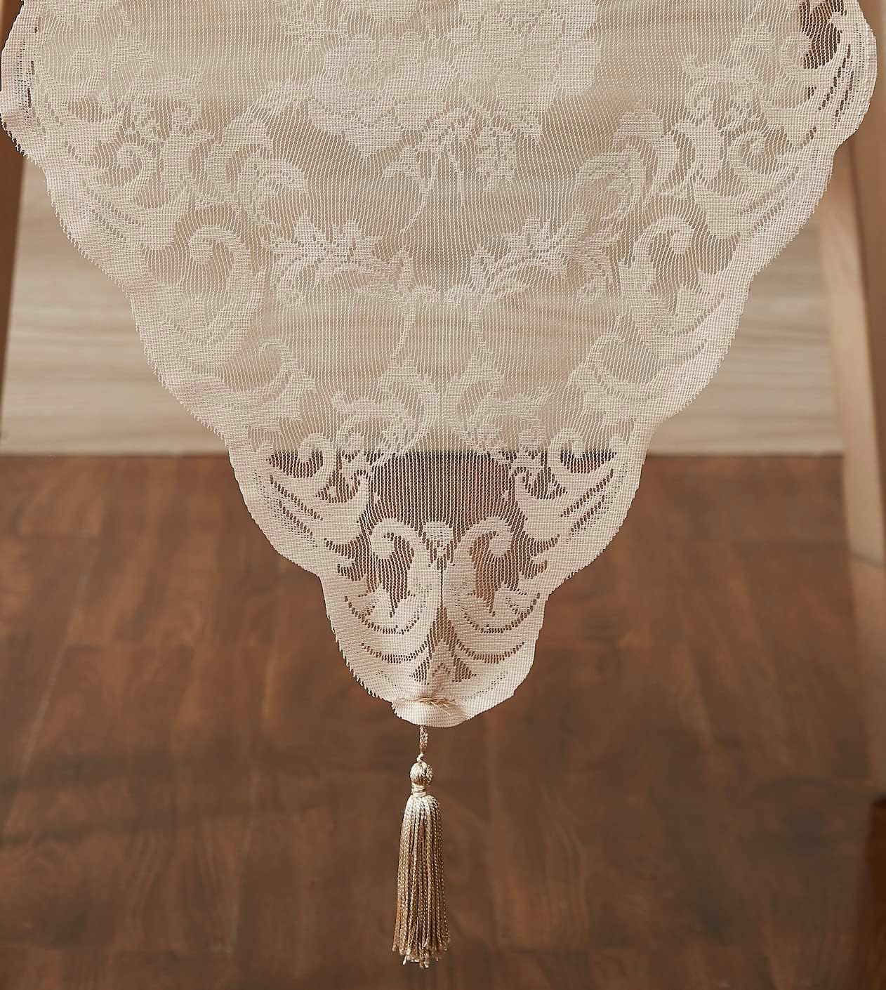 - š¢ DON'T FORGET TABLE RUNNERS: Our Ivory, Linen, White and Black Lace Table Runner Has 2 Vintage Tassels That Would Make Any Table Look Classy and Chic. Wedding Runners Come in Extra Small 14 x 36, Small 14 x 48, Standard 14 x 72, Long 14 x 96 and Extra Long 14 x 120 Inch Sizes so You can Cover Anything from Small Coffee Table and Dresser to Extra Large Wedding Table. We Also Offer 36 and 48 inch Small Round Tablecloths, Commonly Known as Table Topper