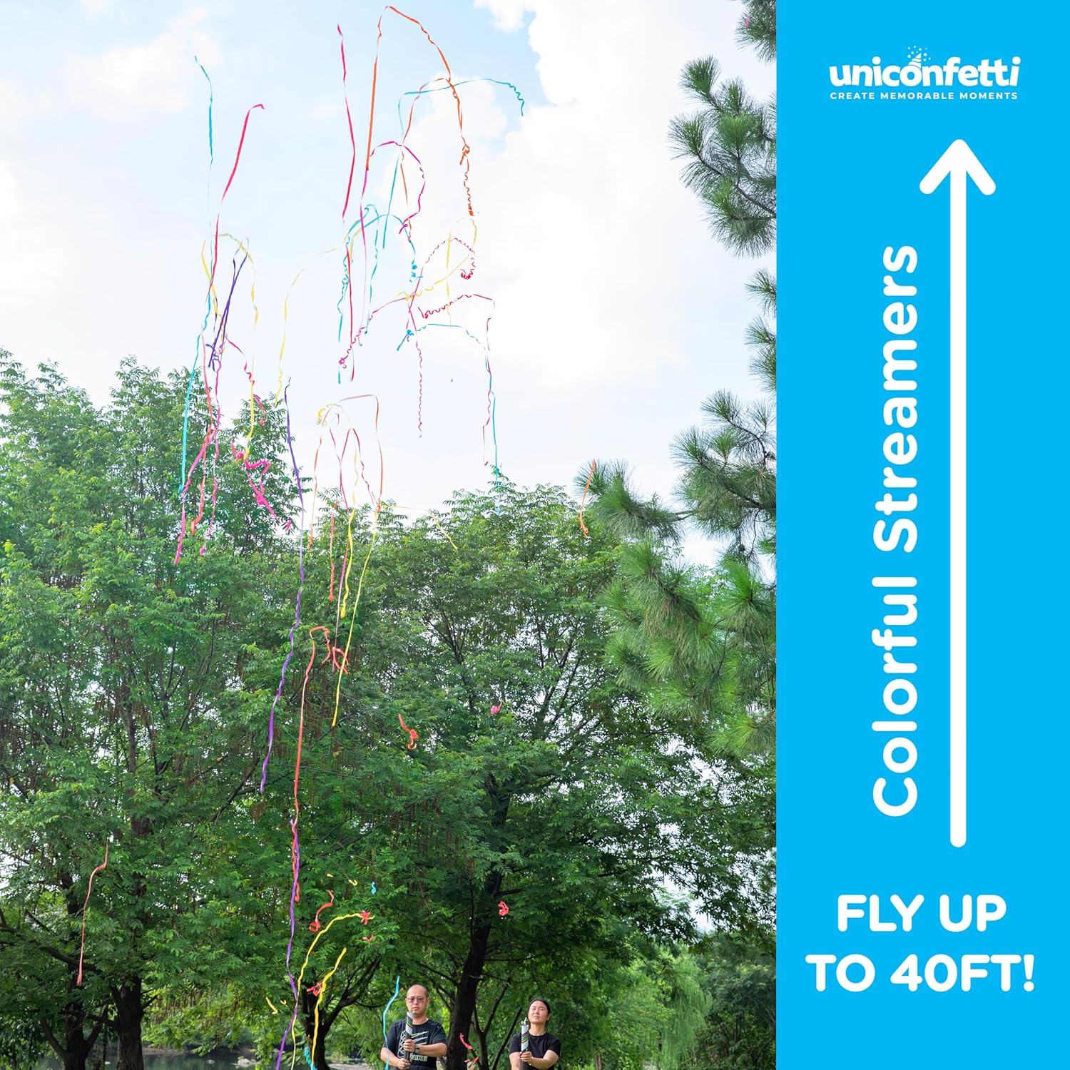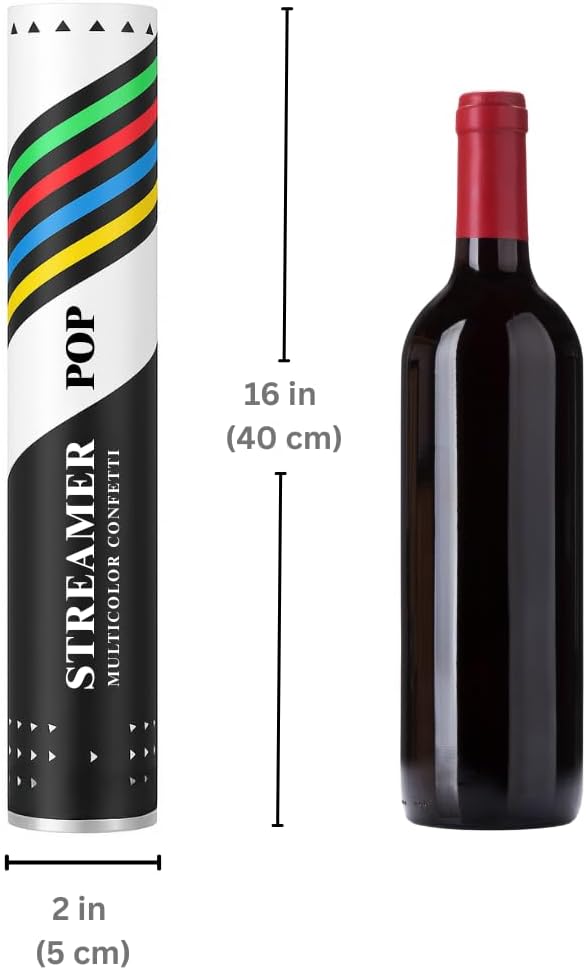- š SUPER LOUD & FUN for any party or occasion - 6 JUMBO-SIZED poppers shooting multicolor STREAMER confetti papers up to 40 feet, fall and twirl slowly down in colorful streams. Poppers will shoot with loud [POP] that will guarantee to get everyone's attention.