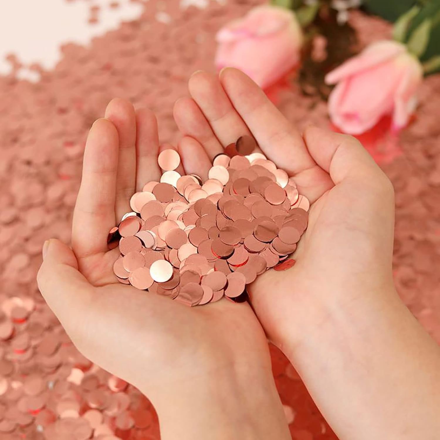 - Size: Rose Gold Round Foil Confetti; Each 0.59 inch; 1.76 oz; Great Quality Craft Foil Confetti