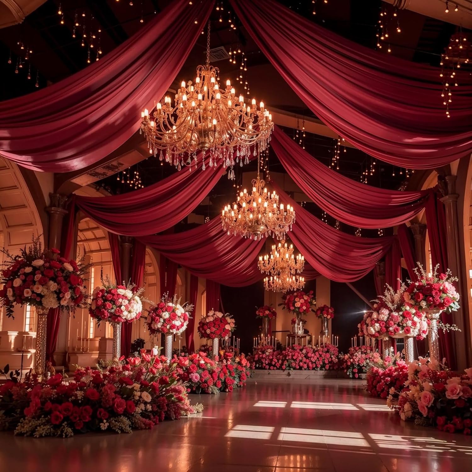 - BURGUNDY WEDDING DECOR APPLICATION: Semi-sheer draping fabric is versatile to any theme of ceremony party. Perfect for wedding stage, party stage, wedding reception, bridal shower, birthday, photo backdrop, home events, outdoor events, Valentine's Day, Thanksgiving Day, Christmas, New Year and more.