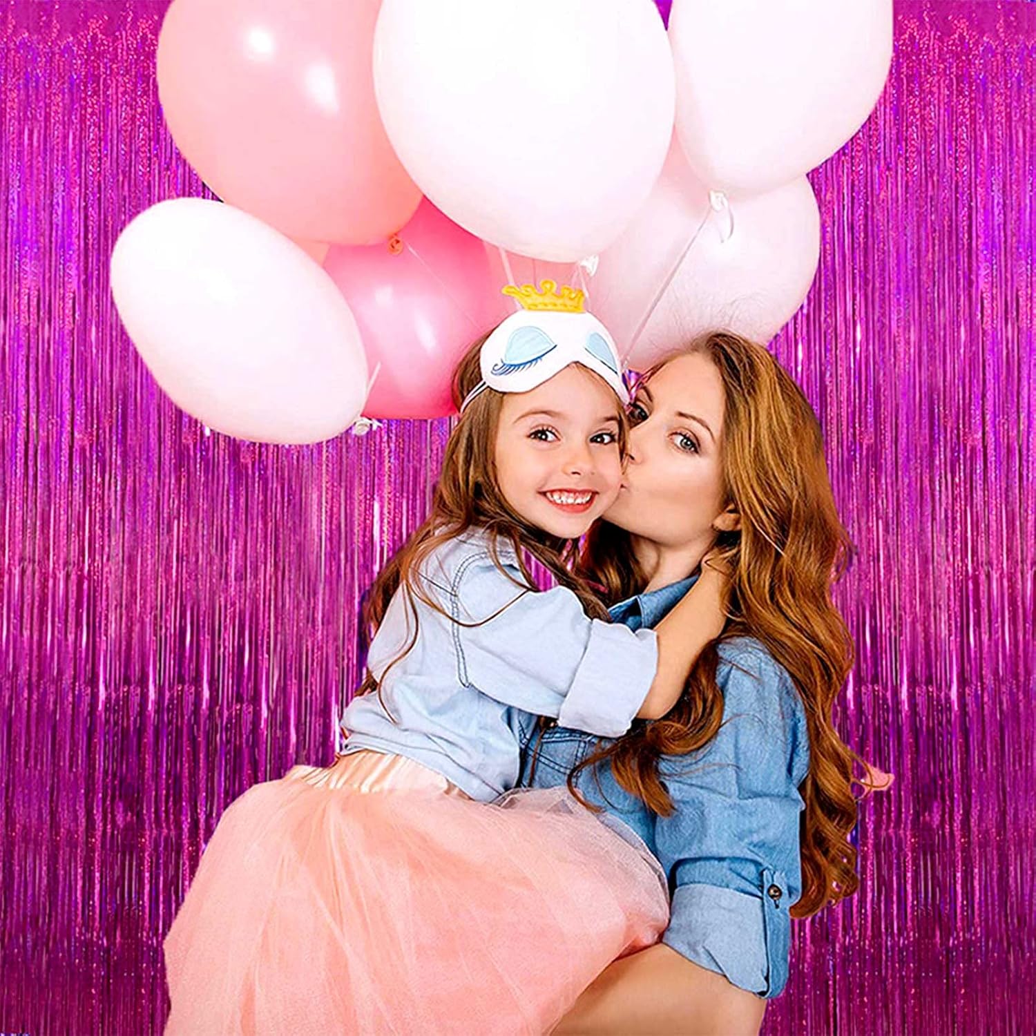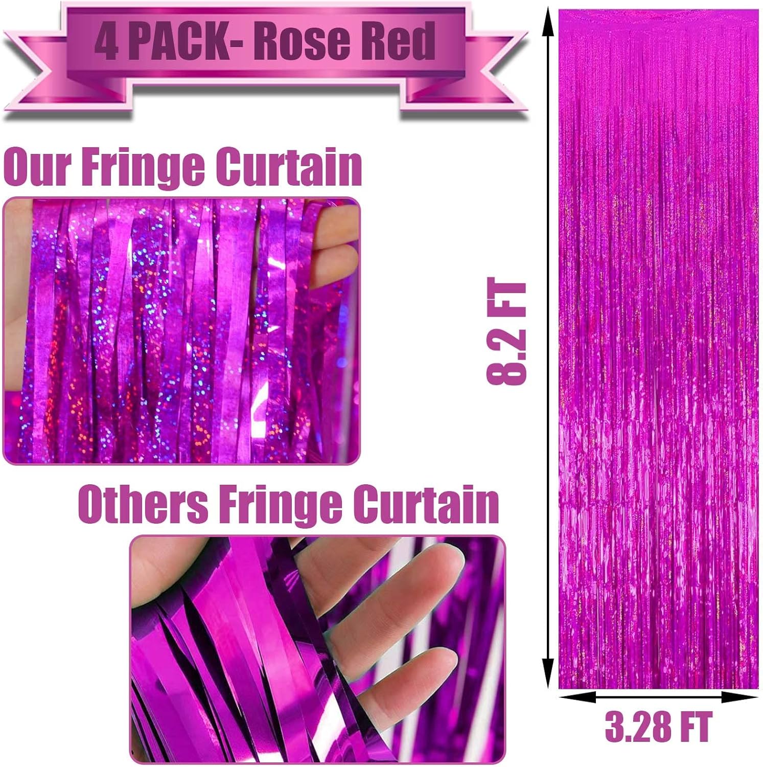 4 Pack Fuchsia Tinsel Foil Fringe Curtain Backdrop, 3.28Ft x 8.2Ft Metallic Streamers for Photo Booth Props Wedding Bridal Shower Bachelorette Birthday Halloween Christmas Party Decoration