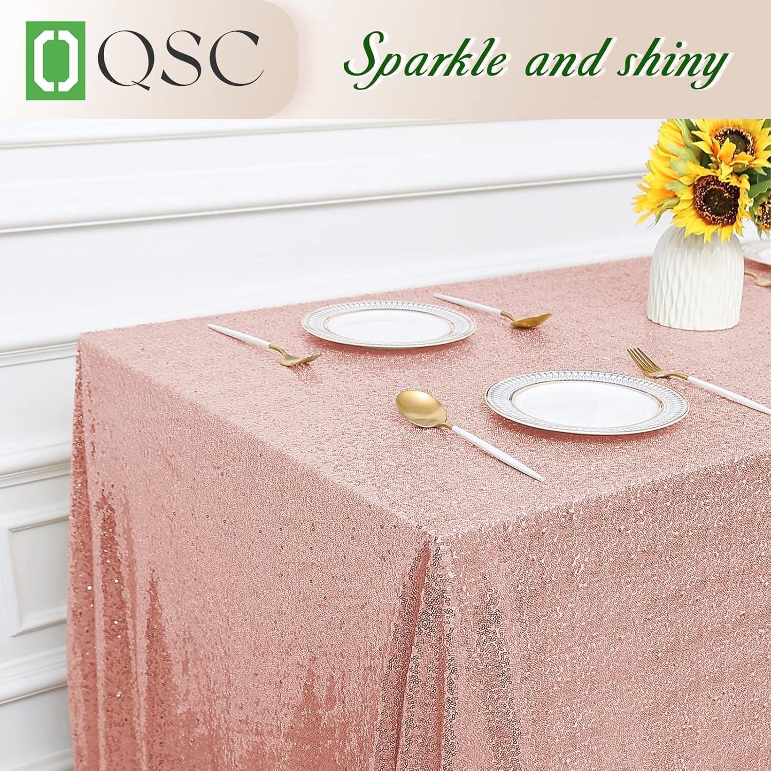 OQSQ Rosegold Sequin Tablecloth 50x80 inch, Glitter Drape Table Cloth, Sparkle Sequence Table Overlays for Thanksgiving Day Wedding Birthday Party Baby Bridal Shower