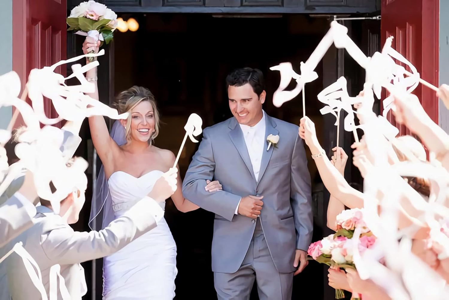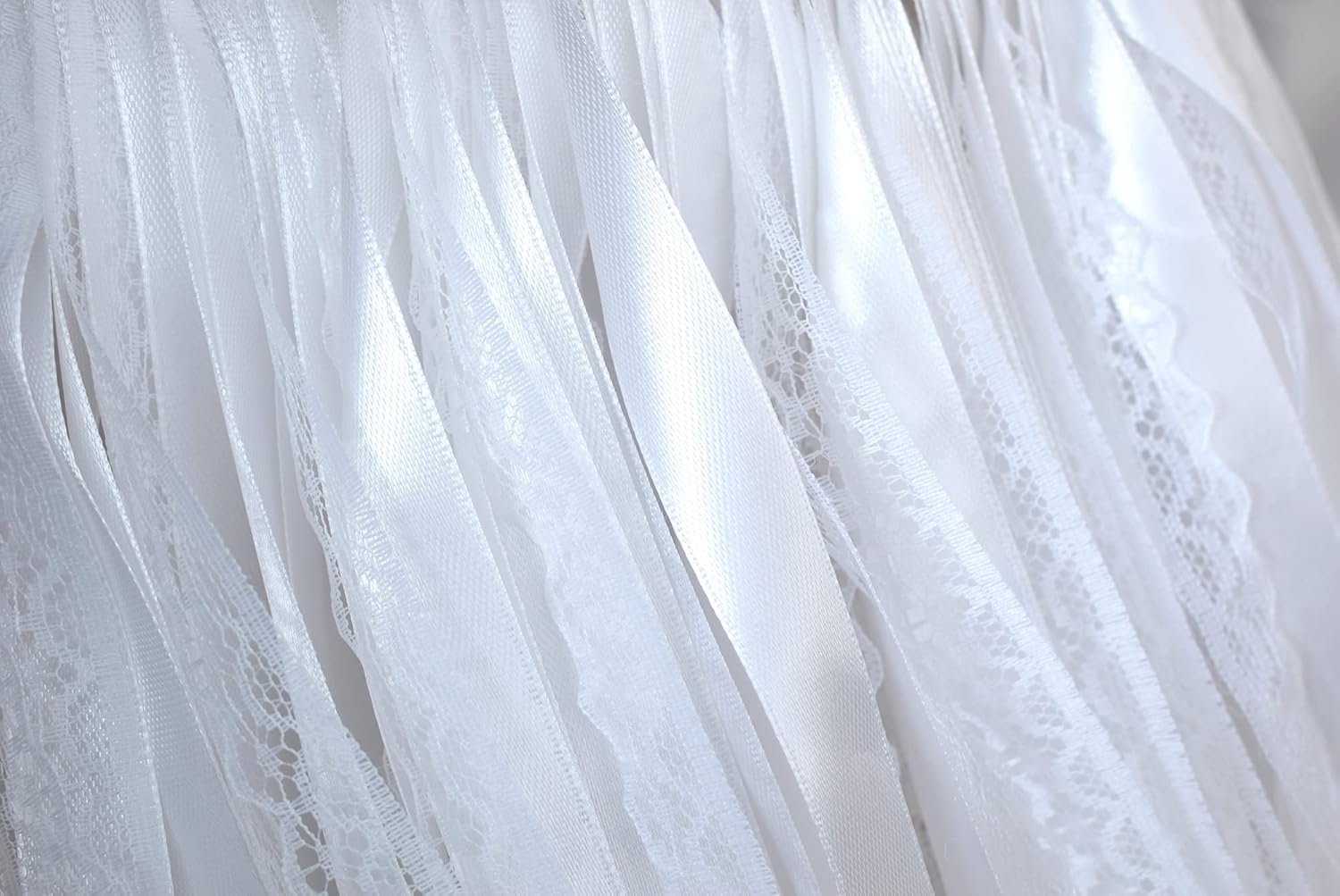 - This wedding lace wands was designed for a classic wedding, being white the symbol of purity and peace, and which also differs by the touch of white lace ribbons. Lace ribbon wands add a festive flair to the celebration and some photo opportunities at the send off moment