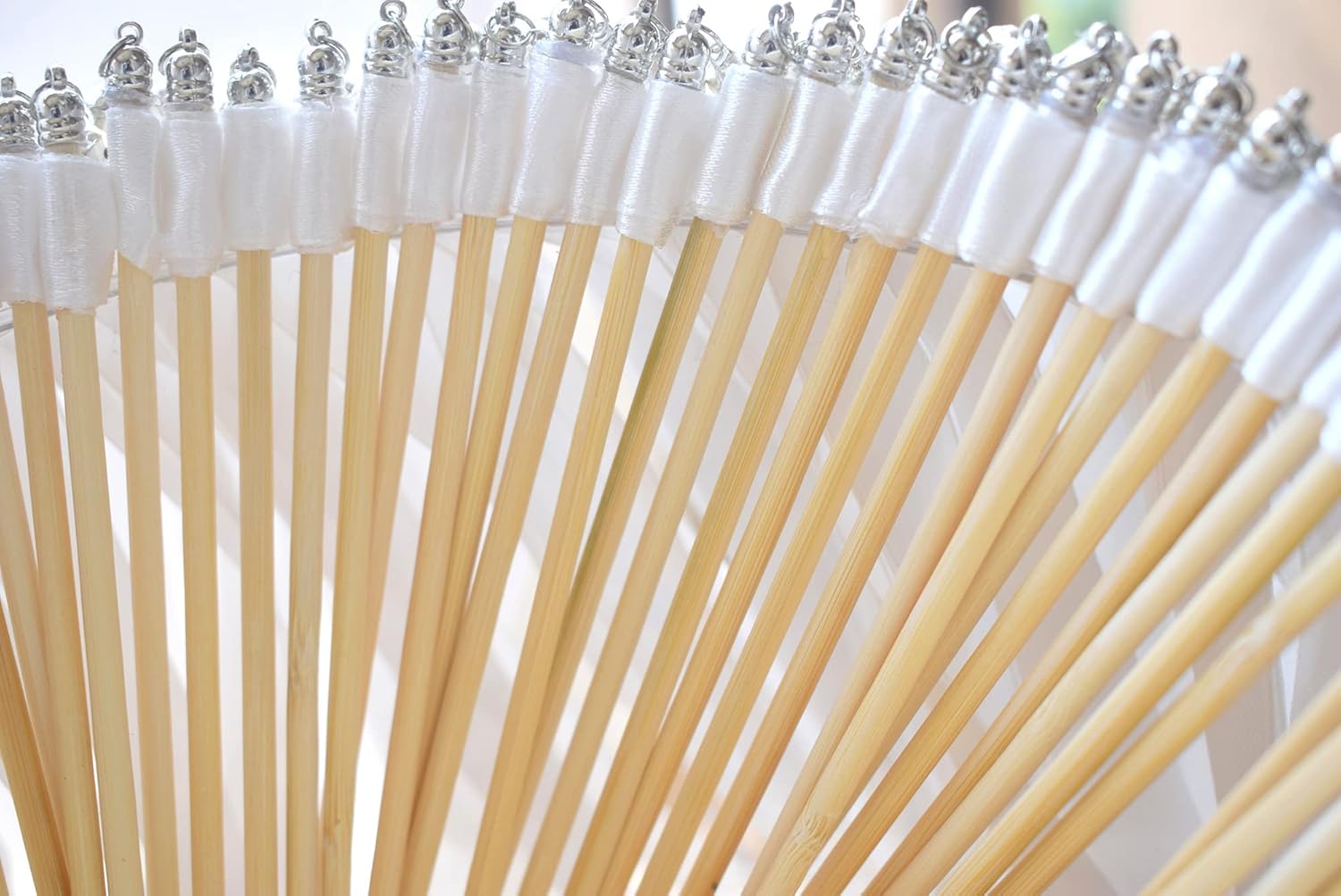 Kingsnow 100 Pieces Lace Wedding Ribbon Wands with Triple Ribbon and Silver Bell Wand Silk Fairy Stick Wand Streamers Party Ribbon Sticks Magic Fairy Wands for Wedding Bridal Shower Photo Prop Send