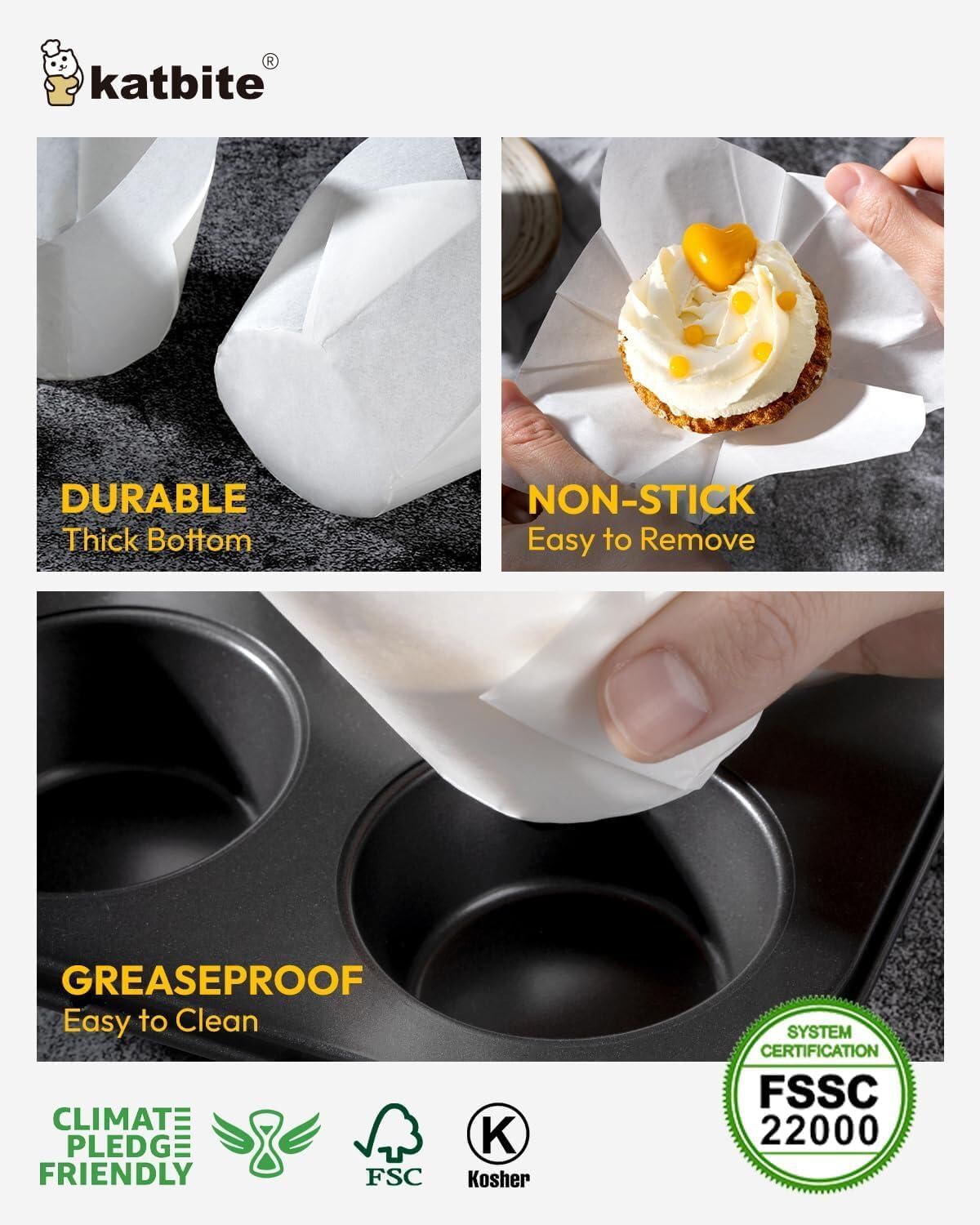 Katbite Tulip Cupcake Liners 200PCS, Muffin Baking Cupcake Liners Holders, Baking Cups, Cupcake Wrapper for Party, Wedding, Birthday(White)
