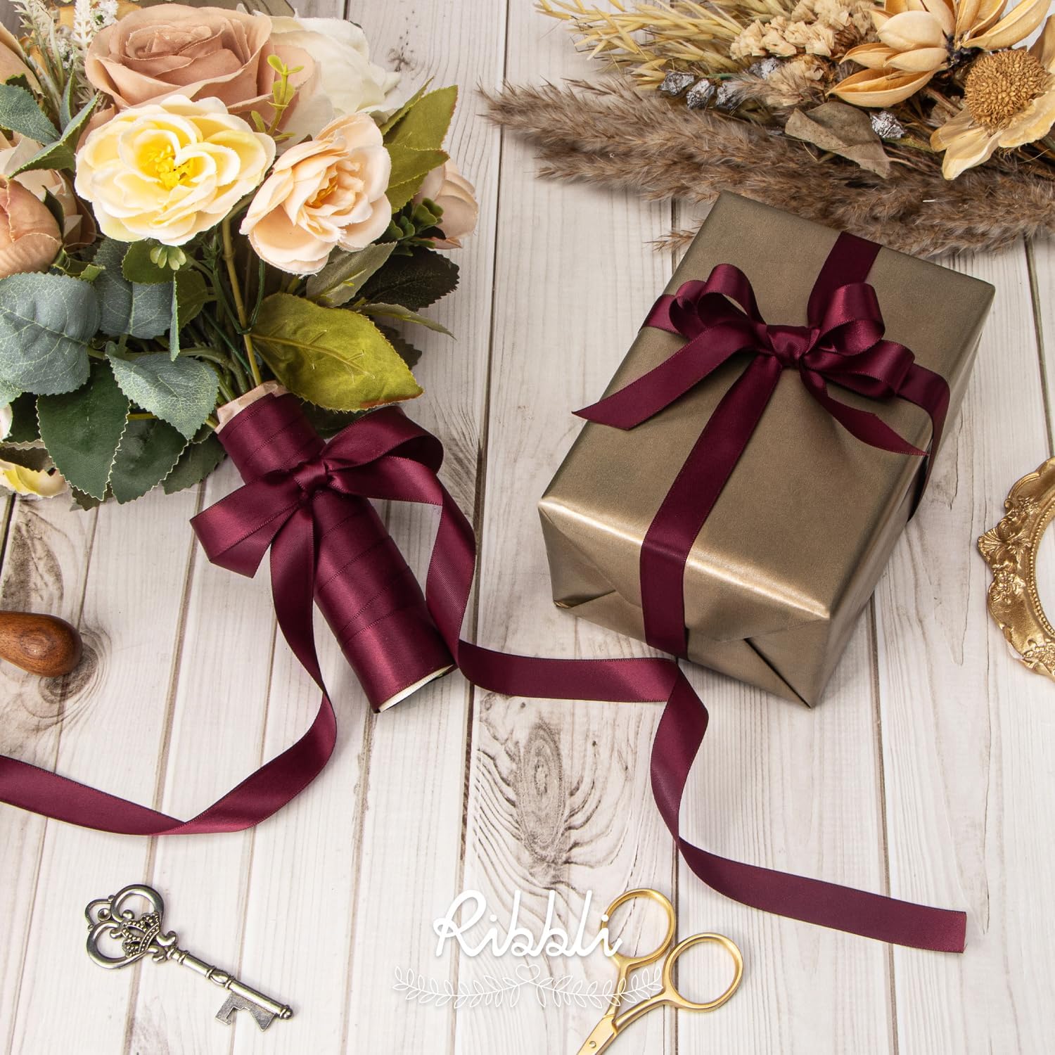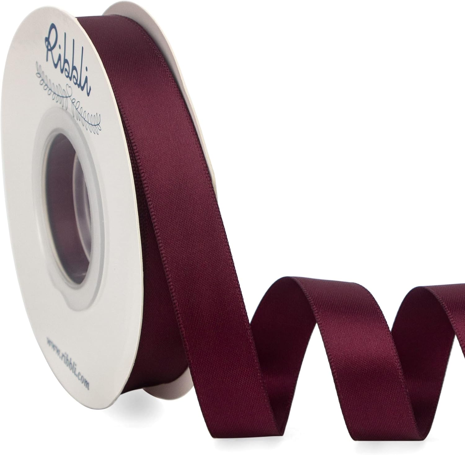 Ribbli Burgundy Satin Ribbon 5/8 inch x Continuous 25 Yards,Double Faced Satin Use for Craft, Gift Wrapping, Christmas Ornaments, Hair Bows, Bouquet Bows