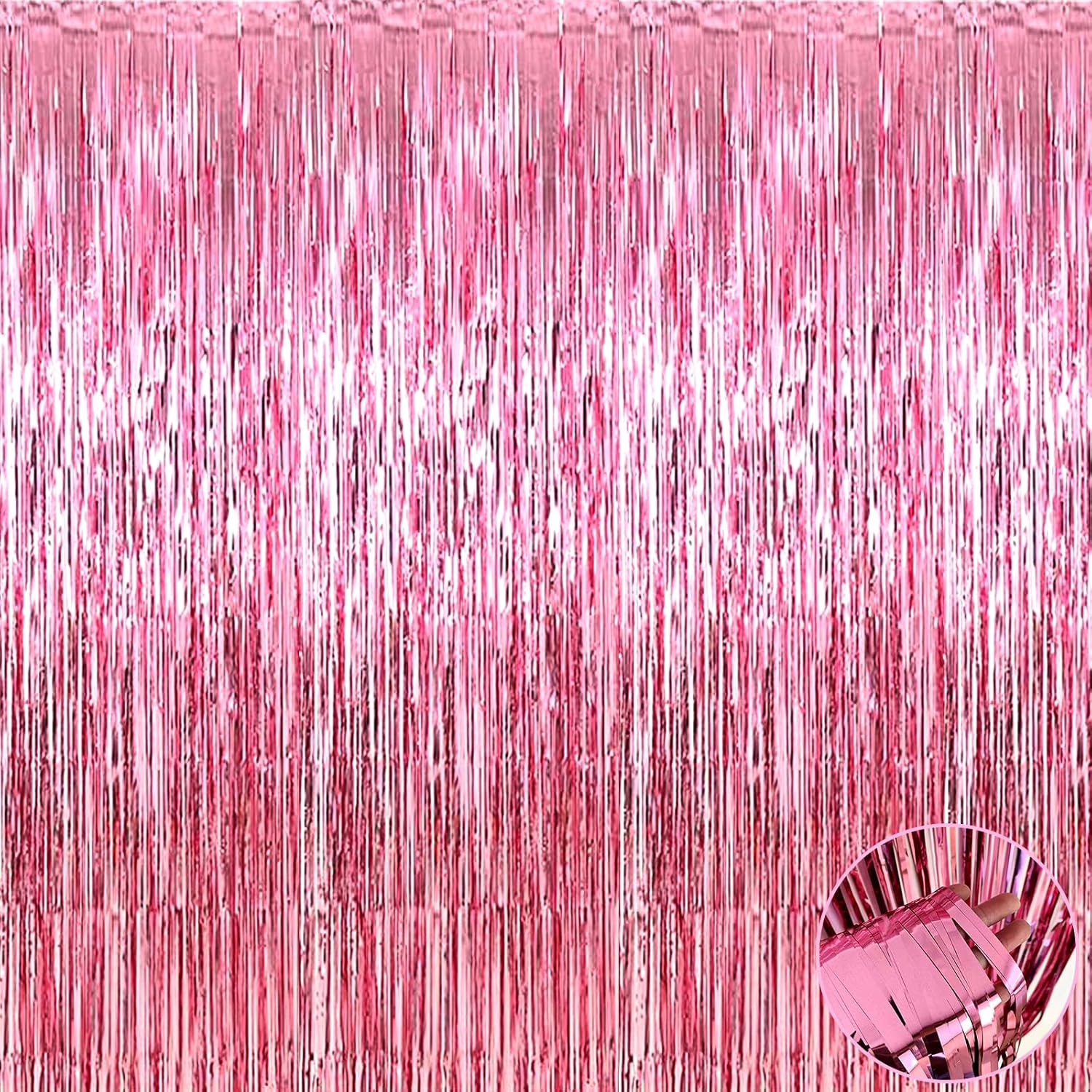 4 Pack Pink Foil Fringe Curtain Backdrop, 3.3Ft x 9.8Ft Metallic Tinsel Foil Fringe Streamers Curtains for Photo Booth, Wedding, Bachelorette, Birthday, Valentine's Day, Carnival Party Decoration
