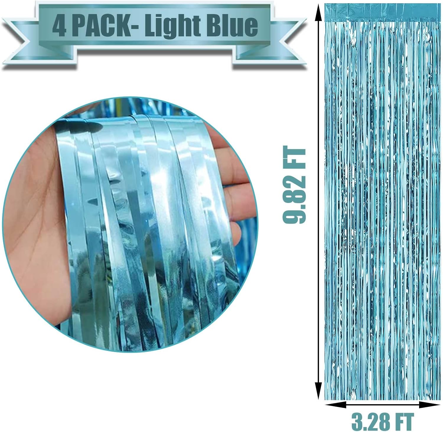 4 Pack Light Blue Foil Fringe Curtain Backdrop, 3.3Ft x 9.8Ft Metallic Tinsel Foil Fringe Streamers Curtains for Photo Booth, Wedding, Thanksgiving, Birthday, Christmas, Halloween Party Decoration