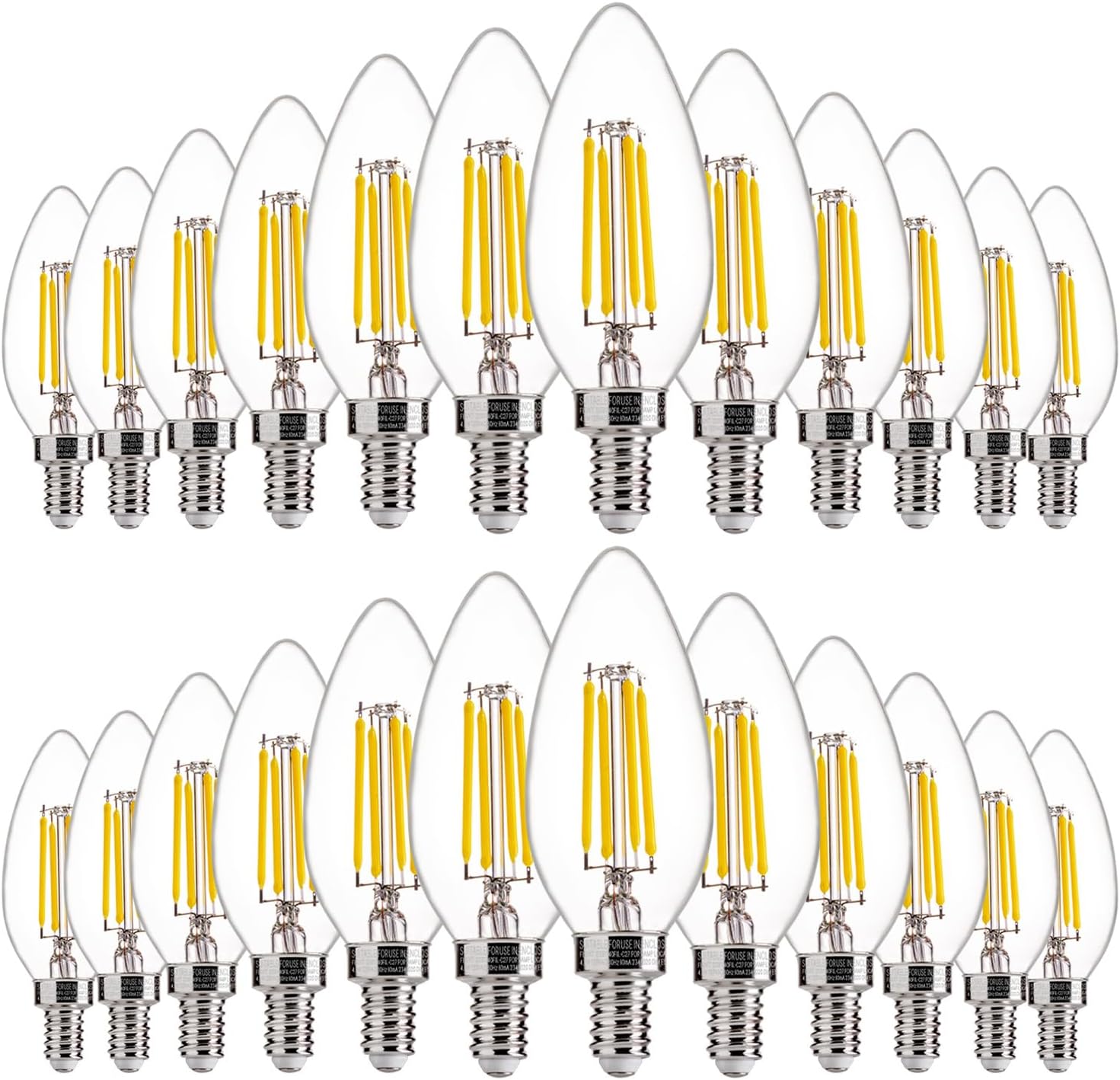 FLSNT 24 Pack Dimmable LED Candelabra Bulbs, 40W Equivalent LED Chandelier Light Bulbs, E12 Base, 5000K Daylight
