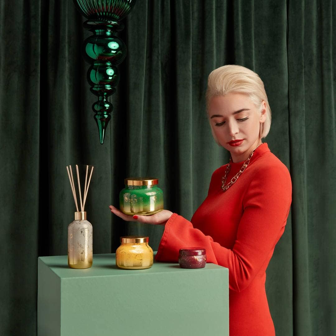 Capri Blue Glimmer Jar Candles - Luxury Holiday Scented Candles for Home - Long Lasting Soy Wax Blend - Scented Holiday & Home Decor - Crystal Pine Oversized Signature Jar (28 oz)
