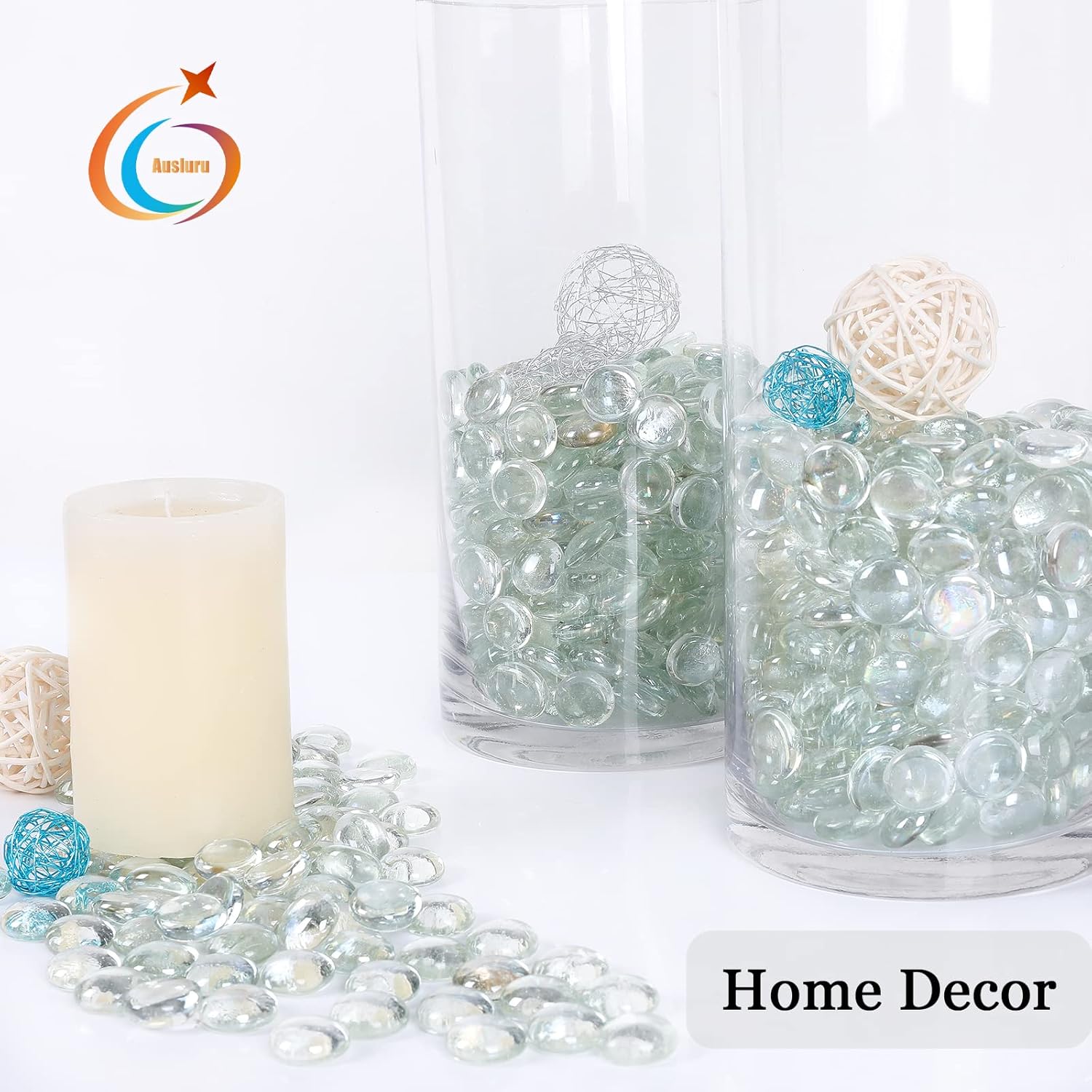 - 【Wide Application】Ausluru sparkling glass nuggets are not only perfect as vase filler, but also can be decorated the hydroponics flower. They are the ideal choice for Home decor and DIY crafts as well. Just enjoy it!