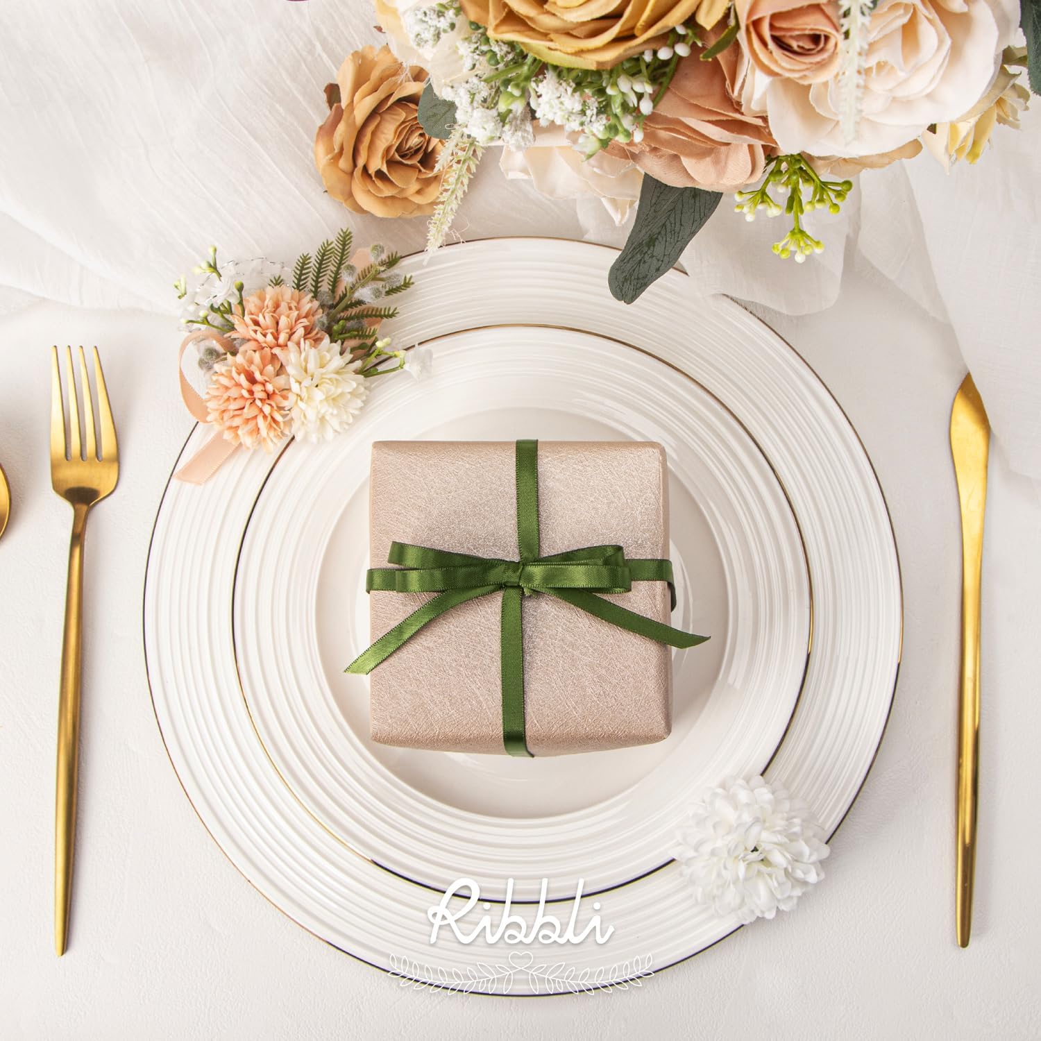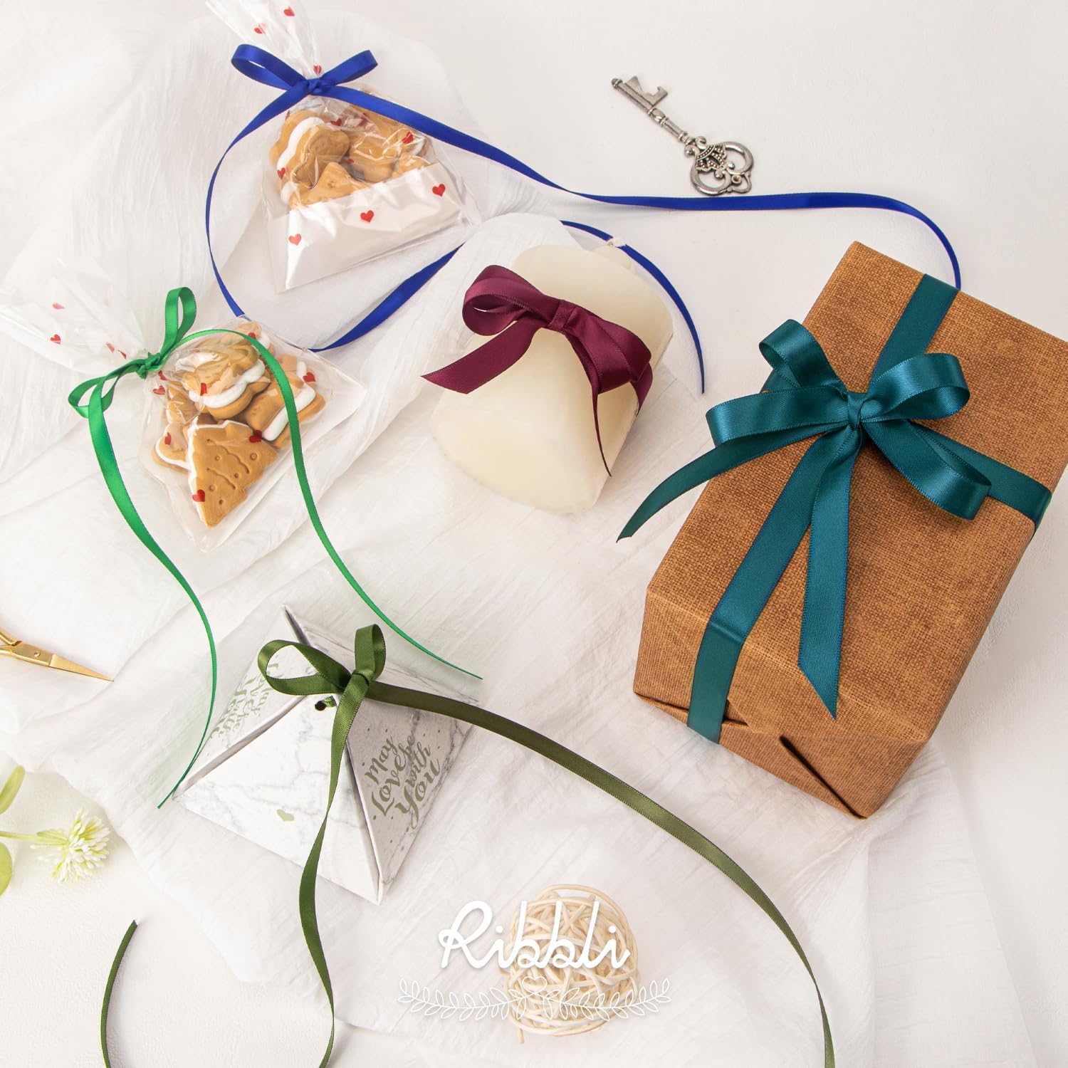 Ribbli Moss Green Satin Ribbon,Double Faced Satin 1/4 inch x Continuous 25 Yards,Use for Bows Bouquet,Gift Wrapping,Wedding Decoration,Floral Arrangement