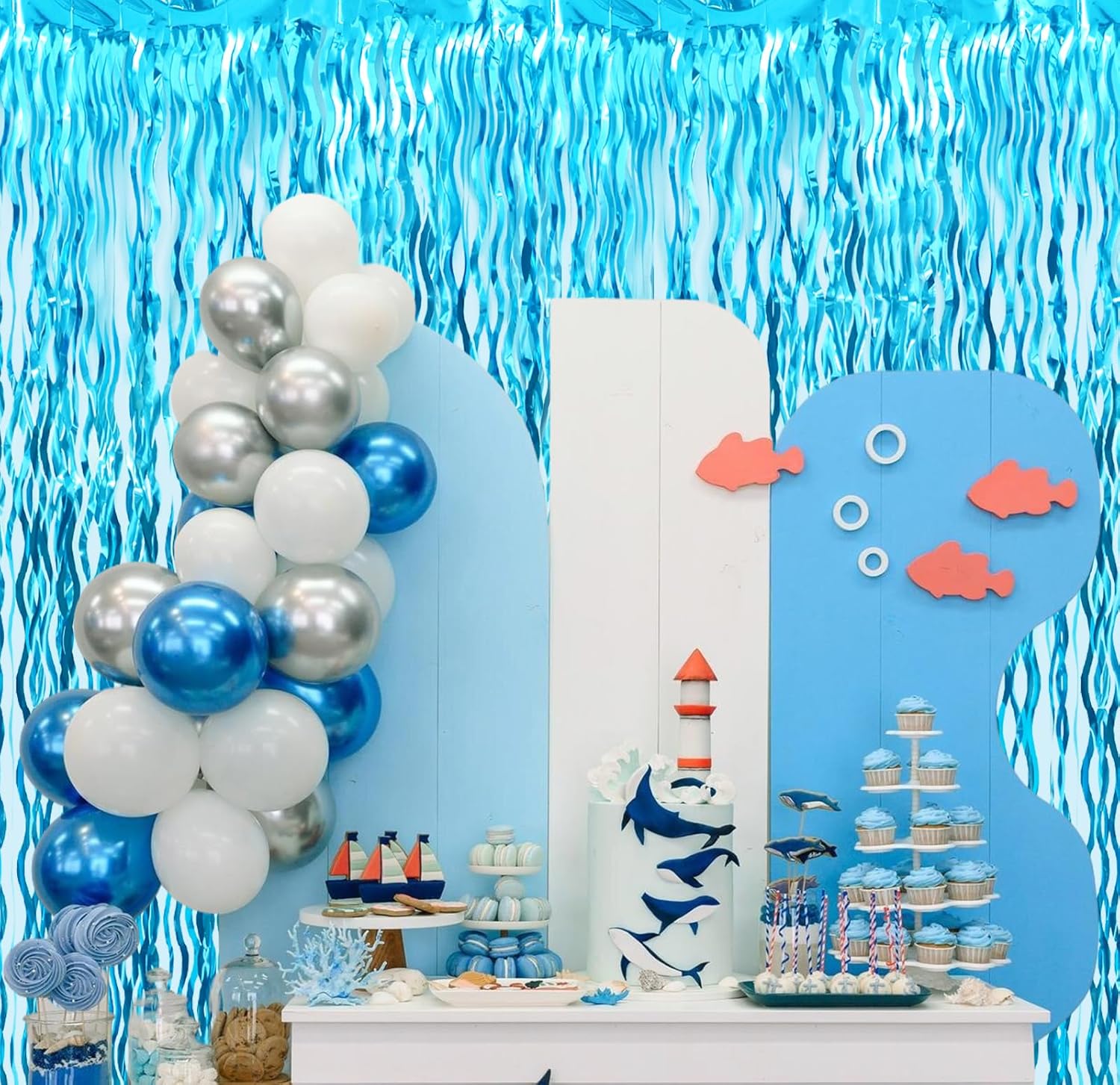 - Package Includes:2 pack wavy light blue foil fringe curtains,3.2 ft x 6.5 ft each,suitable for hanging on a door or coverage a wall fully