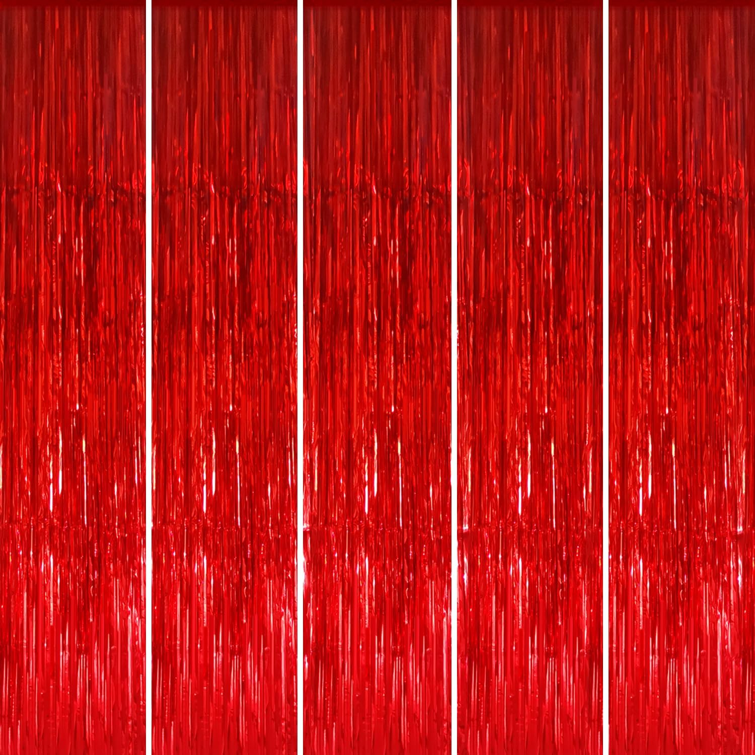 - Package Includes:5 pack red foil fringe curtain,3.2 ft x 8.2 ft each,suitable for hanging on a door or coverage a wall fully