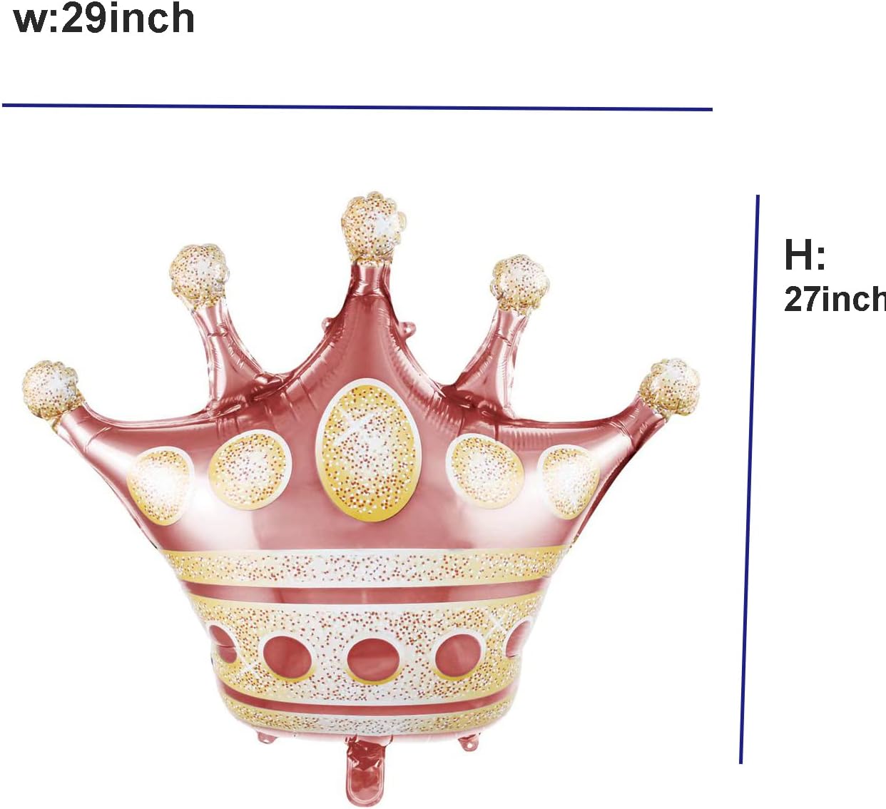 - ♥Good collocation:Our balloons include 1pcs 29*27 inch big rose gold crown balloons,2pcs 18inch metallic rose gold heart balloons,2pcs 18inch transparent clear round rose gold foil balloon。