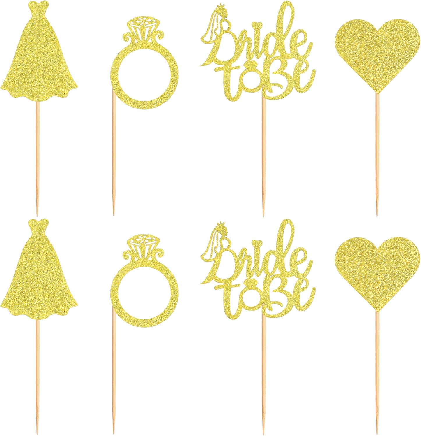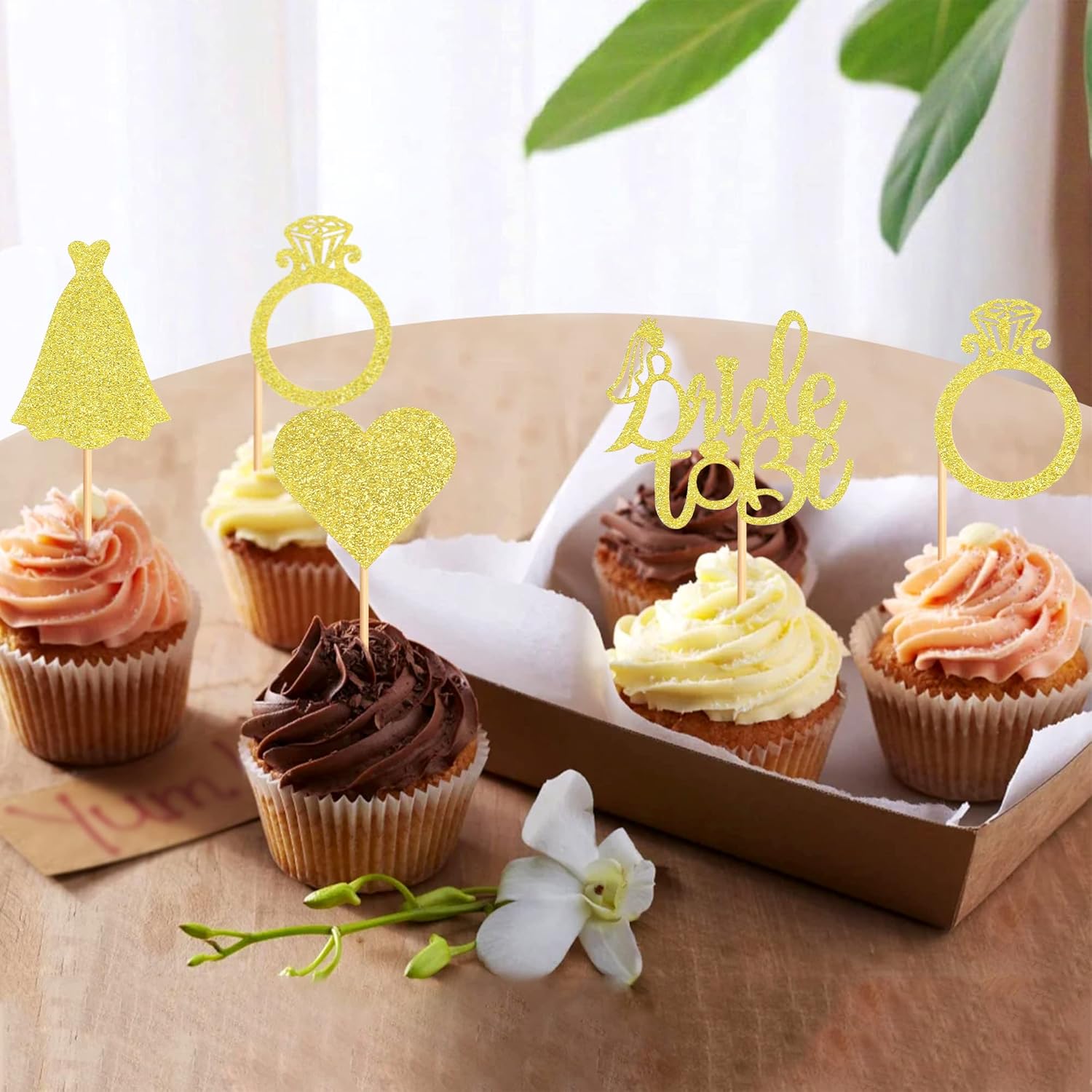 - šPACKAGE INCLUDED: 24pcs gold glitter bride to be cupcake toppers, 4 styles, 6pcs of each style.