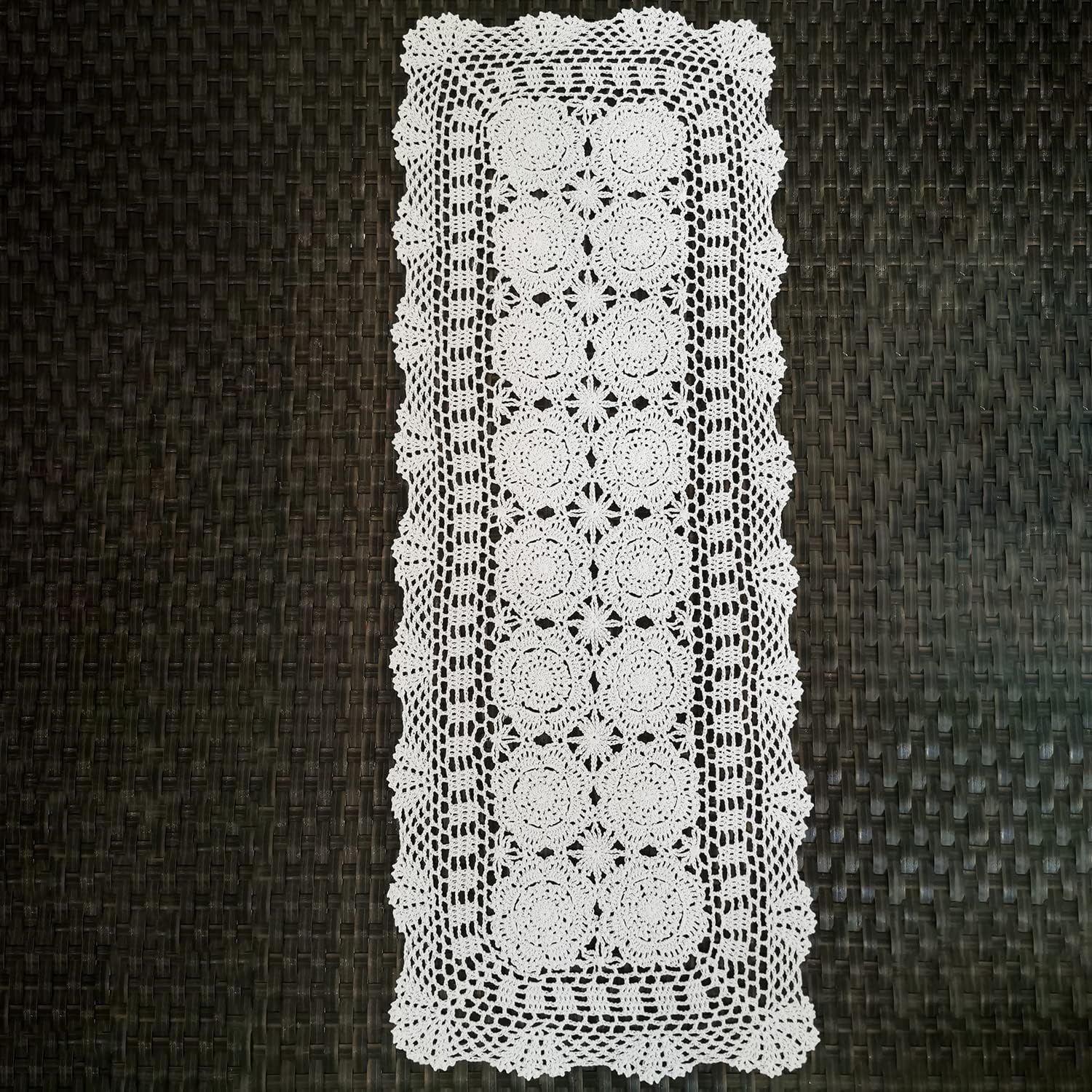 Phantomon Lace Table Runner Rectangular Table Cover Cloth Handmade Crochet Floral Placemats 100% Cotton (Floral White, 15x39Inch)