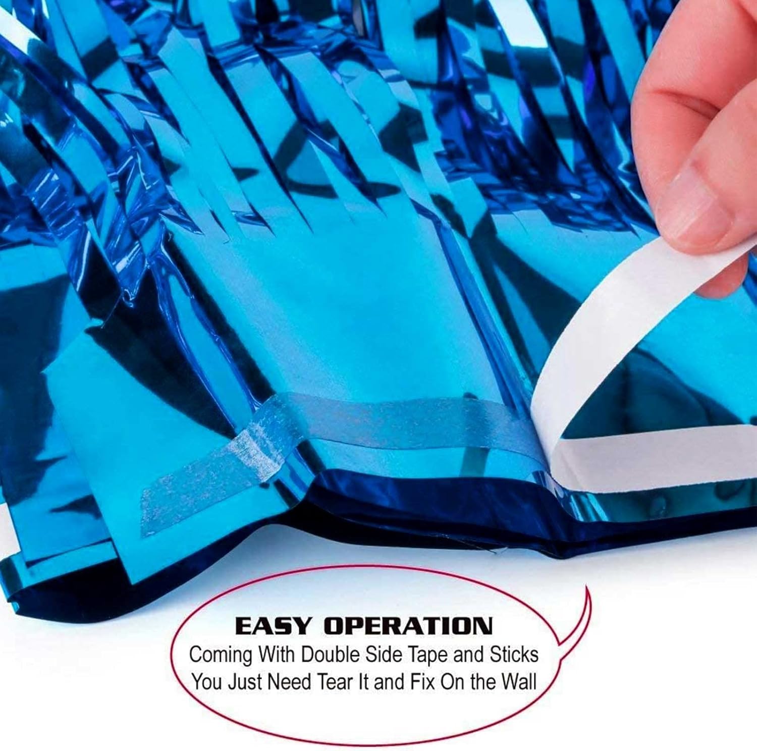- The size of each metallic tinsel foil fringe curtain is 3.2 feet wide and 9.84 feet long, Package include 4 pack foil fringe curtains, suitable for hanging on a door or coverage a wall fully.
