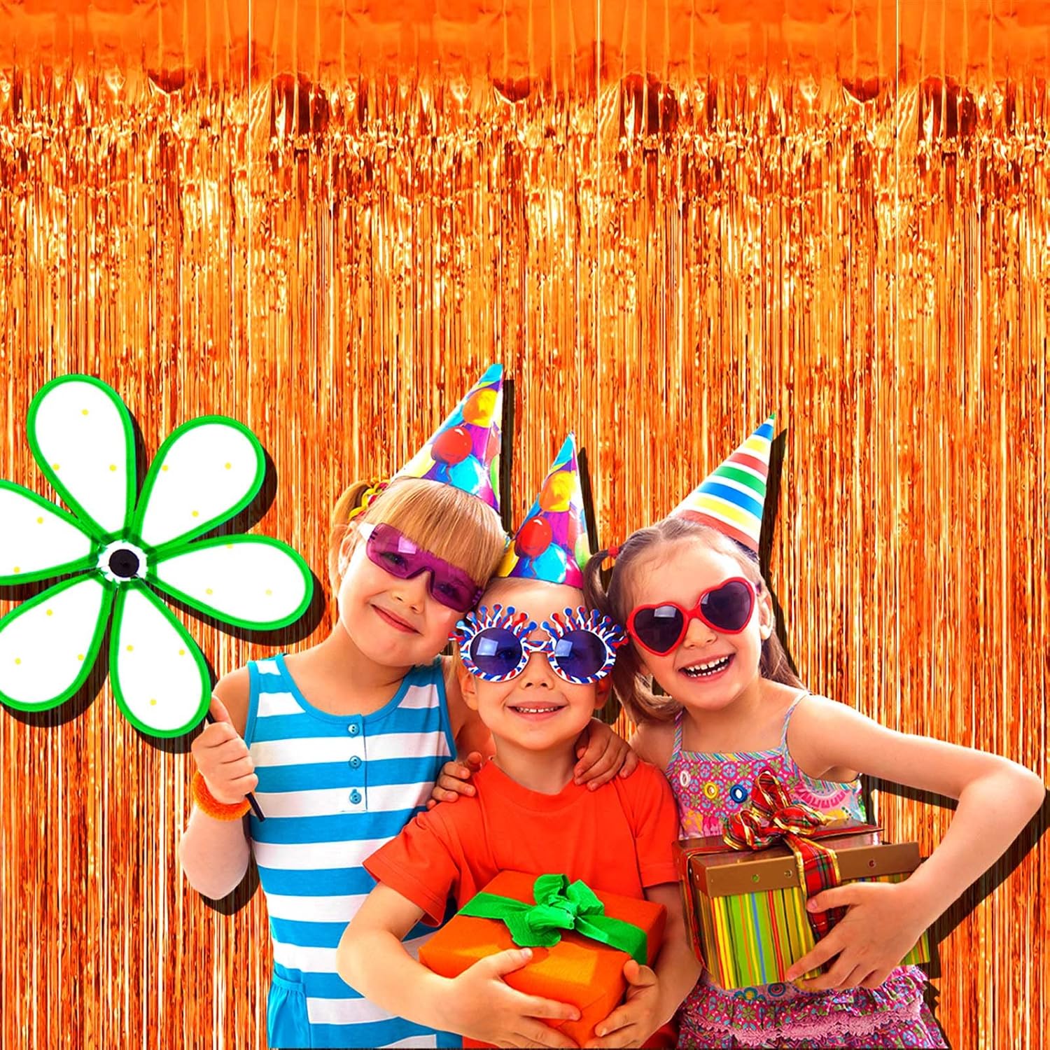 4 Pack Orange Foil Fringe Curtain Backdrop, 3.28Ft x 8.2Ft Metallic Tinsel Foil Fringe Streamers Curtains Party, Photo Booth Props, Birthday, 2022 Mother's Day Decoration Supplies