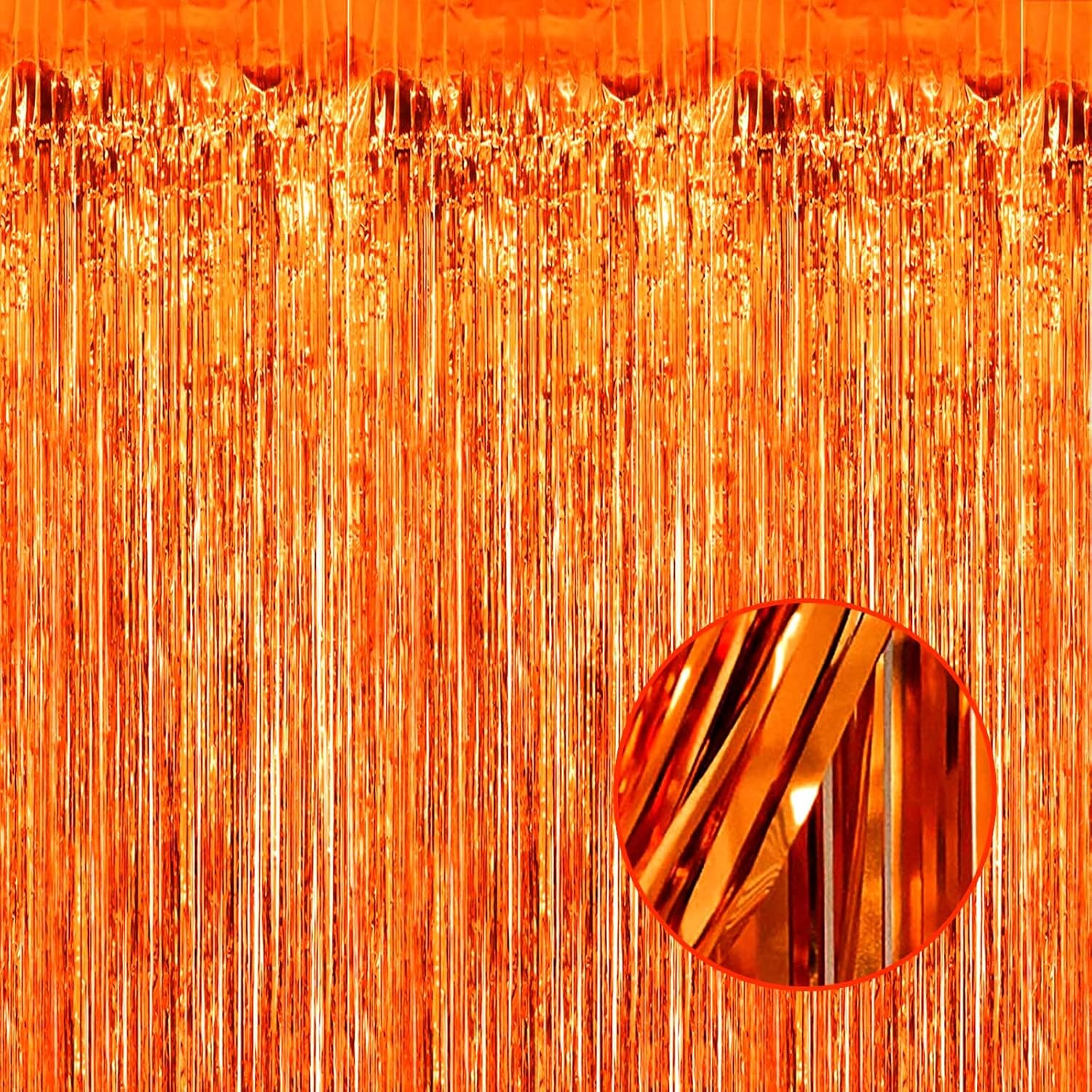 4 Pack Orange Foil Fringe Curtain Backdrop, 3.28Ftx8.2Ft Metallic Tinsel Foil Fringe Streamers Curtains for Party, Photo Booth Props, Birthday, 2022 Mother's Day Decoration Supplies