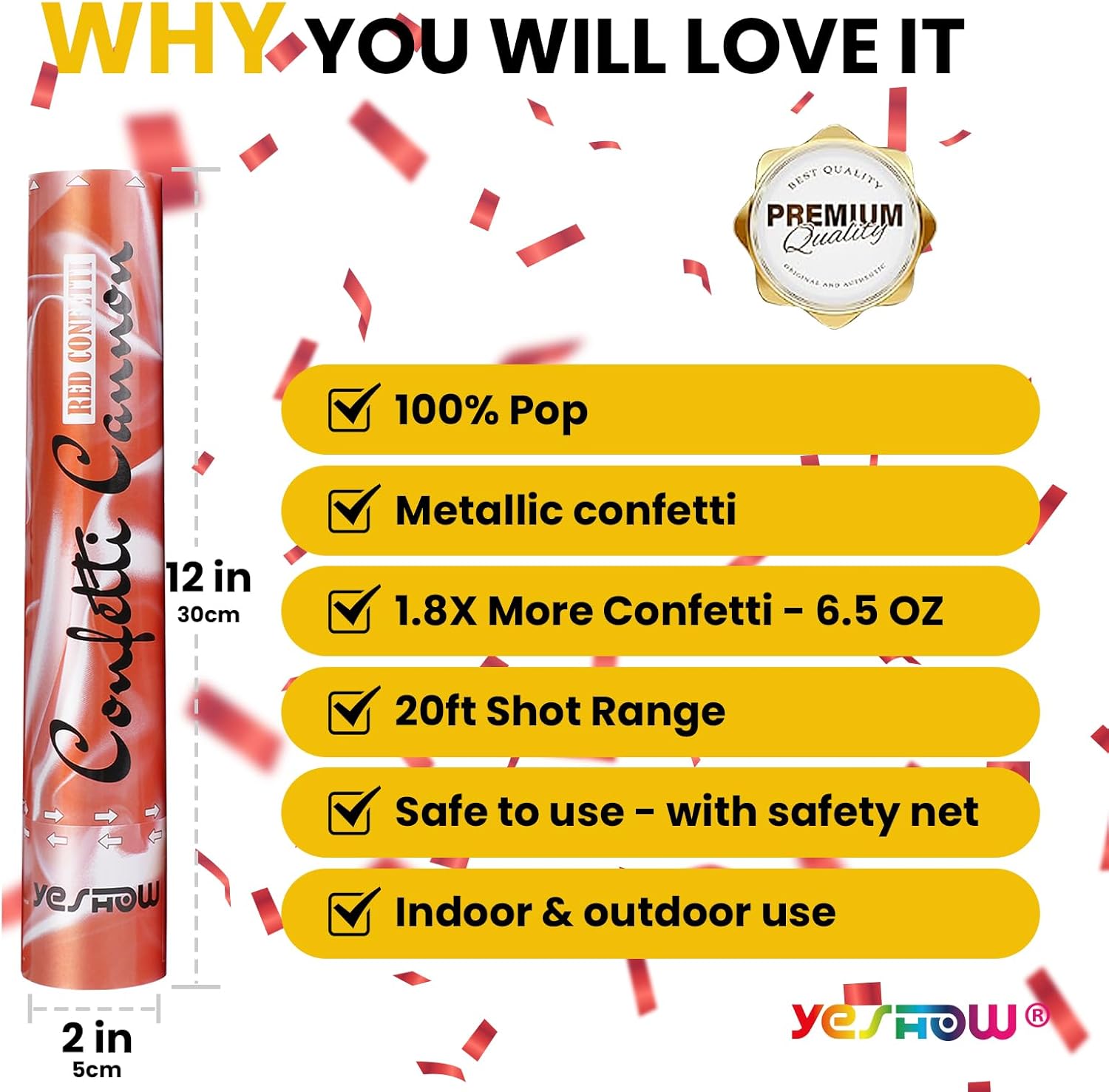 - 【SUPERIOR SAFETY】There would be nothing except red confetti out as shooting. Because there's safety net inside to prevent the metallic parts fly out. Safer to use both indoor and outdoor events