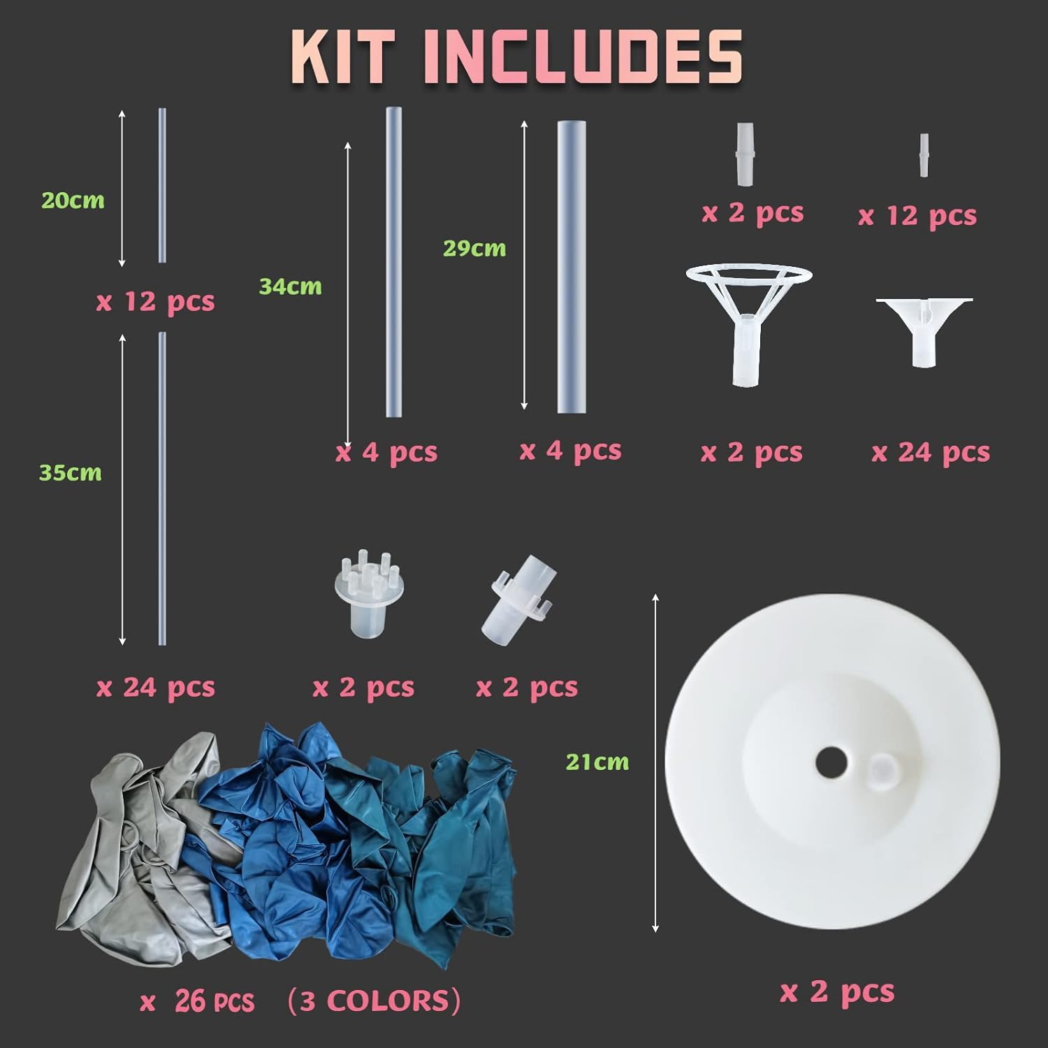 - 2 SETS BALLOONS STAND KIT INCLUDES - Kits Includes All The Necessary Component Parts for Two Balloon Columns, All in One Bag..Each Balloon Stand Comes in 2 Different Height Sizes.Perfect Size for Table & Ground.